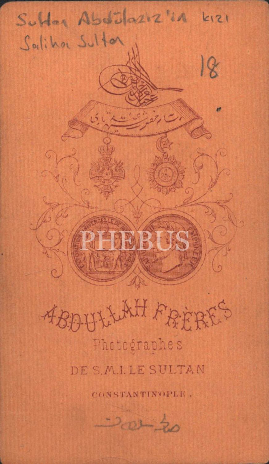 Sultan Abdülaziz Han´ın kızı Sabiha Sultan, Abdullah Freres Fotoğrafhanesi, 6x10,5 cm...