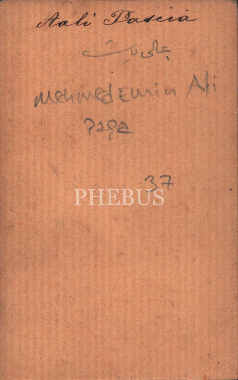 Tanzimat Devri devlet adamı, oynadığı ustaca siyaset ile Avrupa devletlerini Kırım Savaşı´na sokan, ölümünden sonra Avrupa devletlerinin kendisine saygısından ötürü merhumun hokkasını müzayede ile satın aldıkları Sadrazam Mehmed Emin Ali Paşa, 6x10 cm...