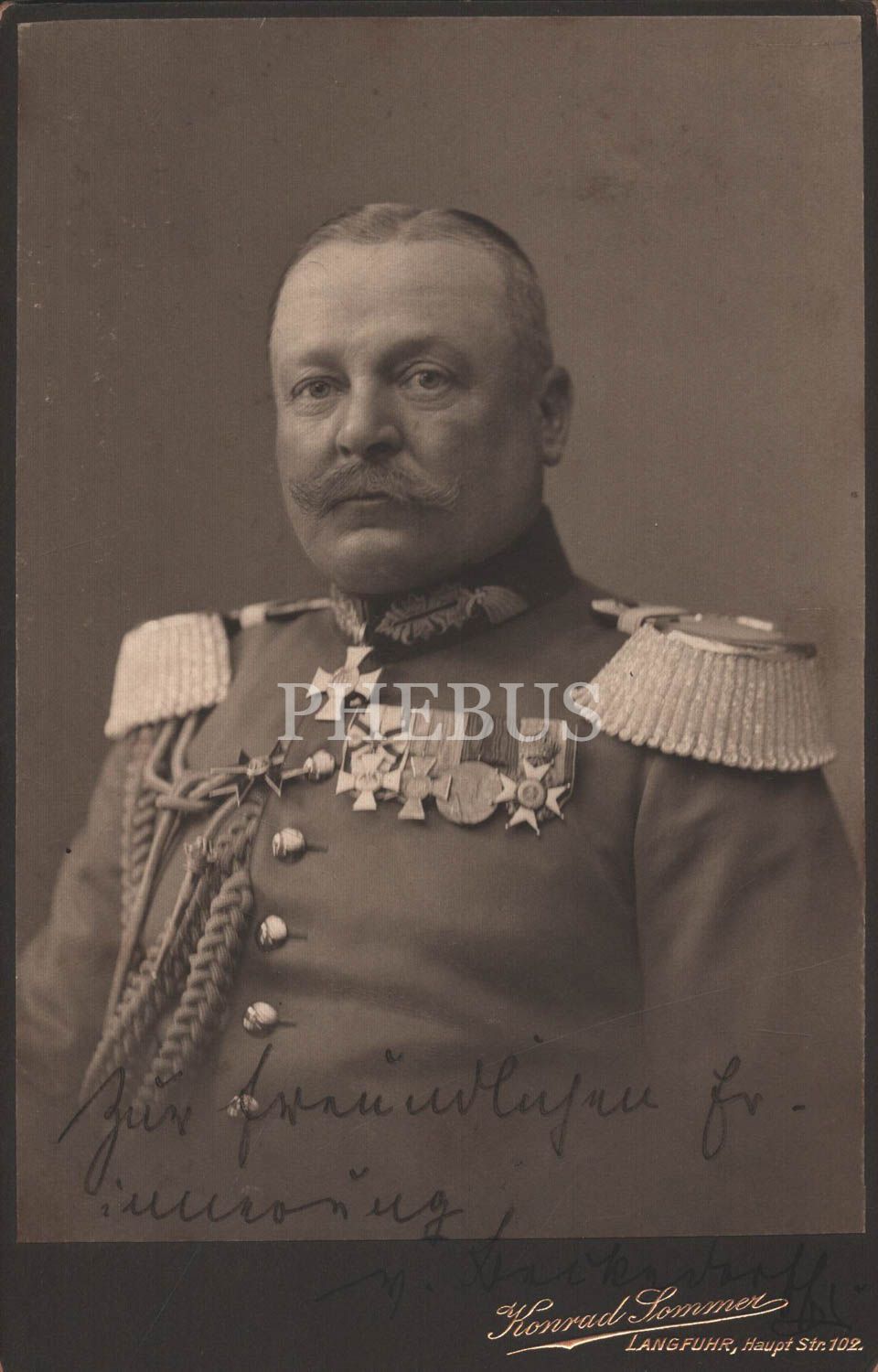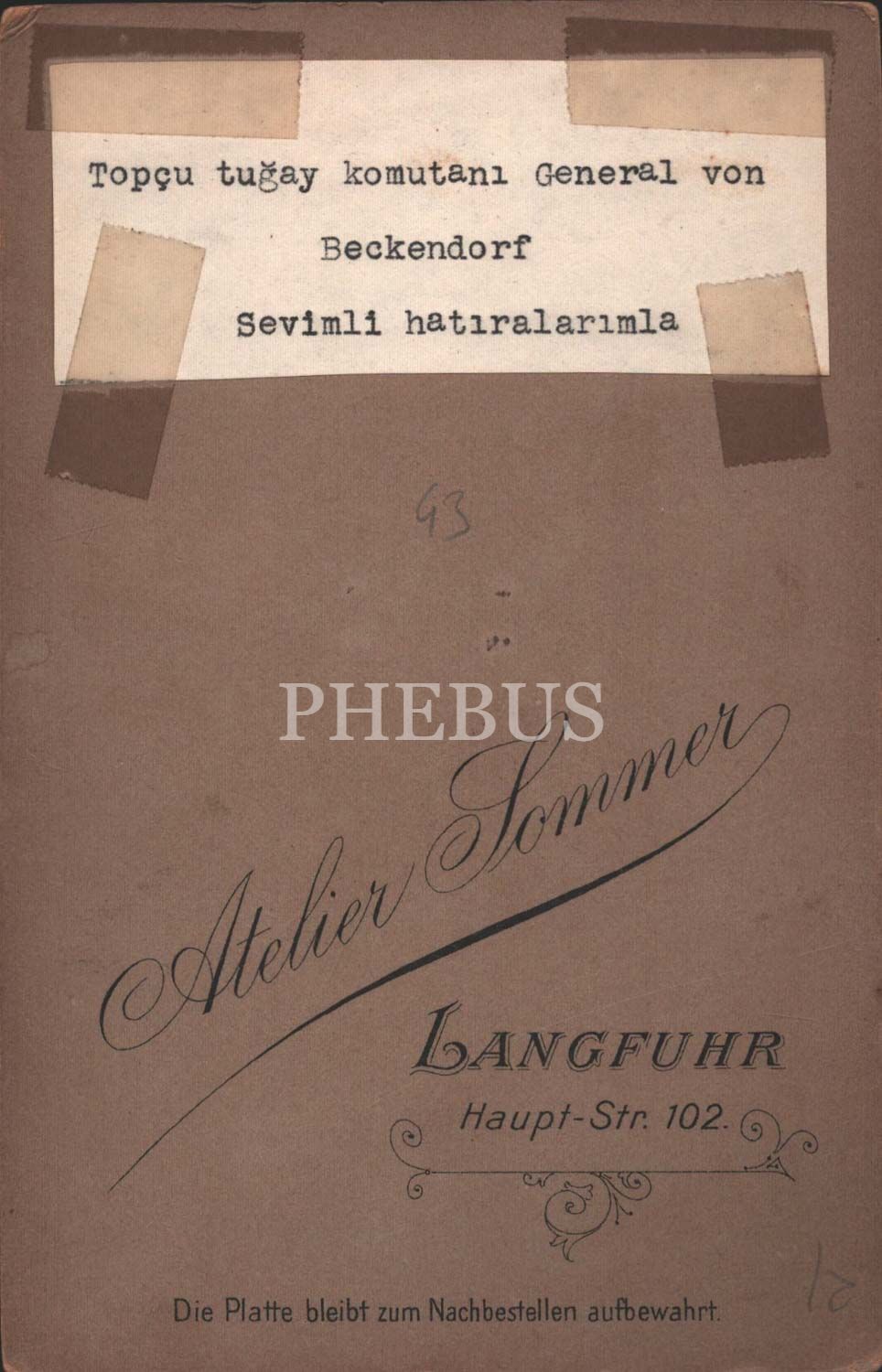 Topçu Tugay Komutanı General Von Beckendorf´un ithaflı ve imzalı kabin fotoğrafı, 10,5x16,5 cm...