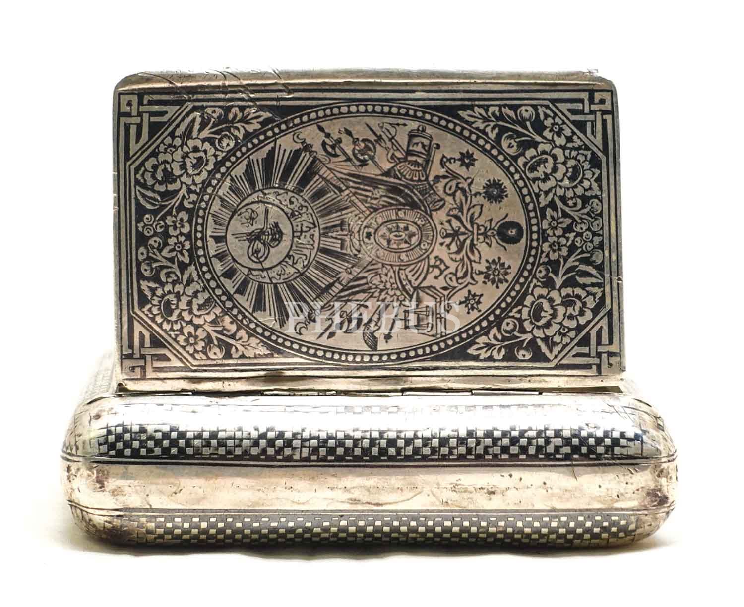 Osmanlıca Van ve Ermeni Hankiyan Usta damgalı, Hanedan armalı, savatlı gümüş sigara kutusu...