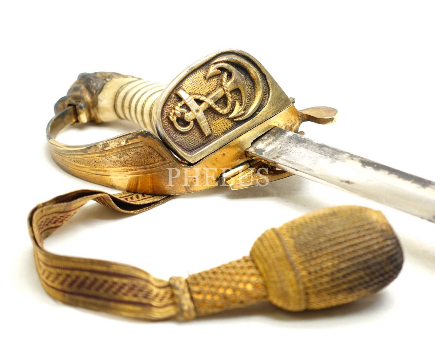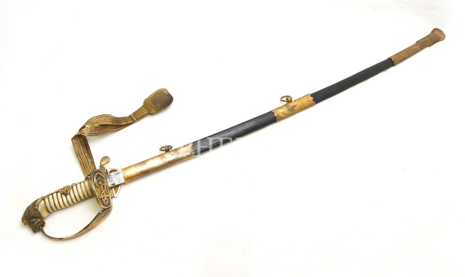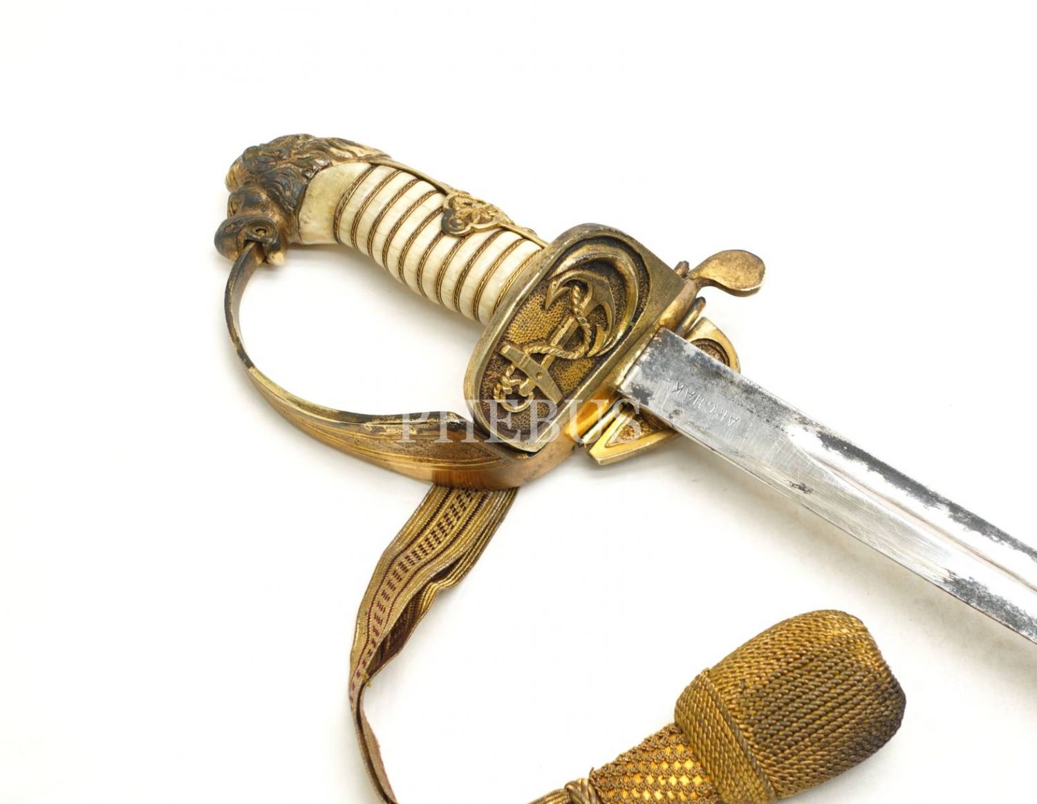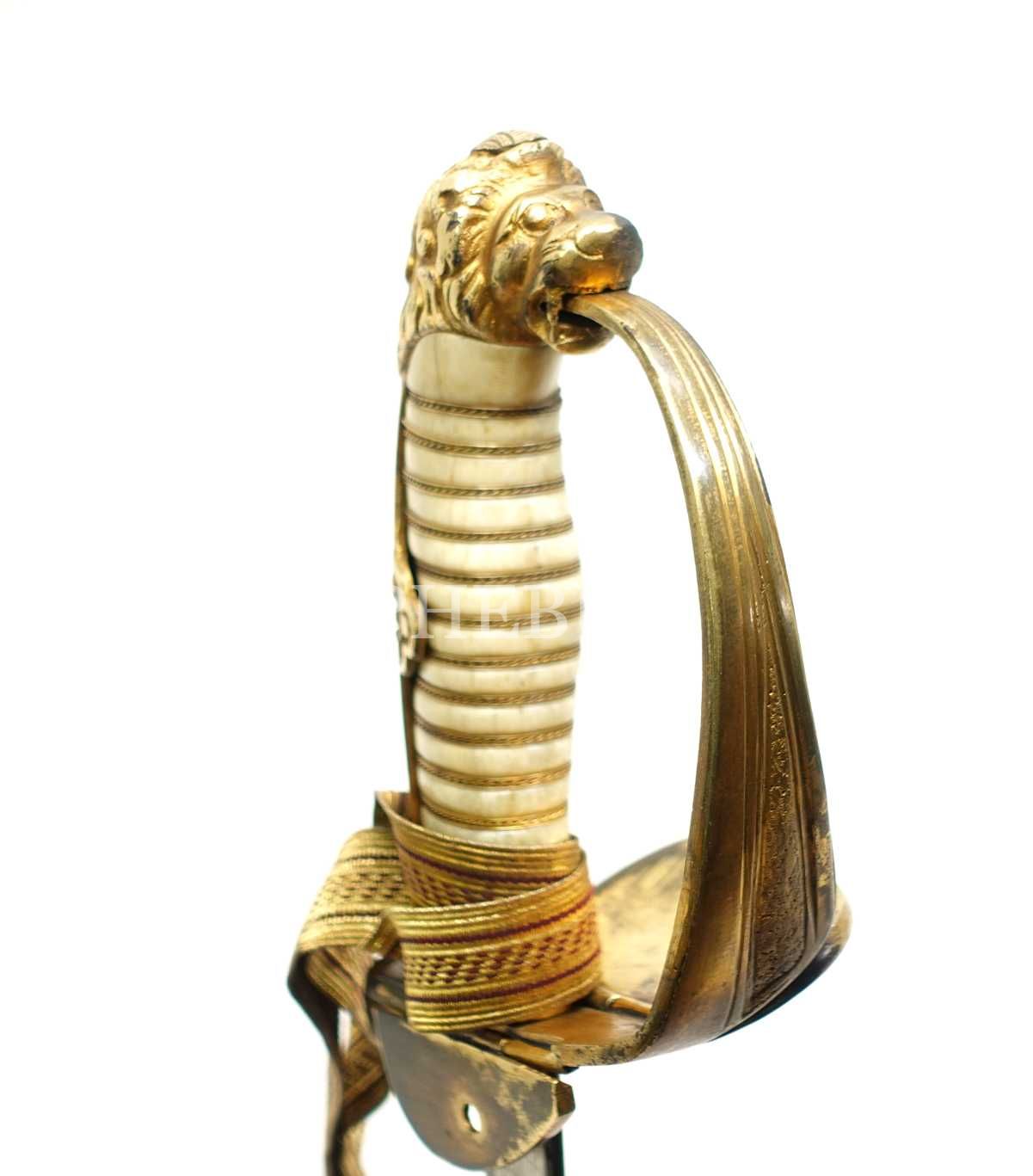 Osmanlı dönemi aslan başlı, bahriye askeri merasim kılıcı, 91 cm...