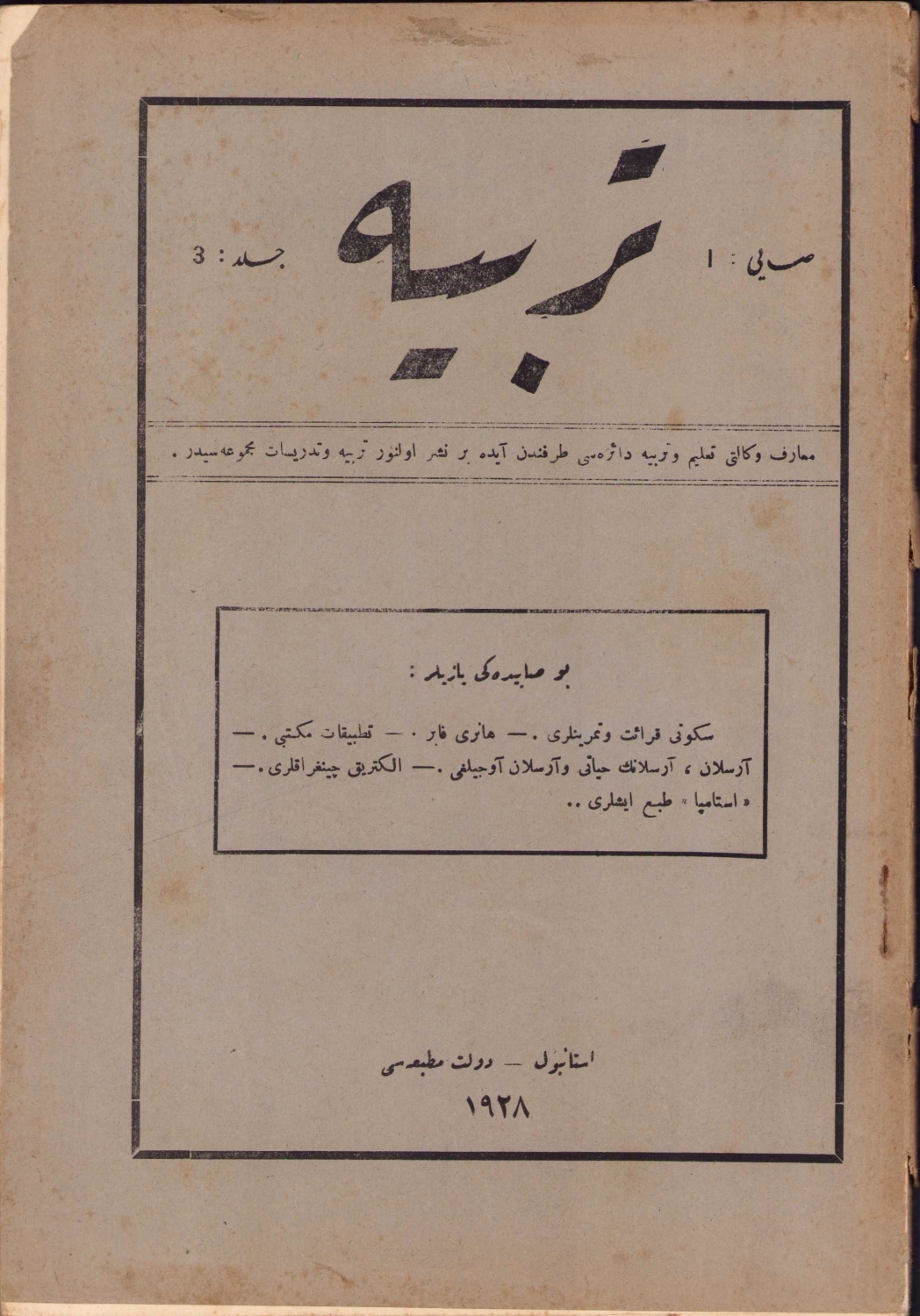 Osmanlıca Terbiye mecmuası 1.Sayı 3. cilt, Devlet Matbaası, İstanbul, 1928, resimli, 74 sayfa, "6x24 cm
