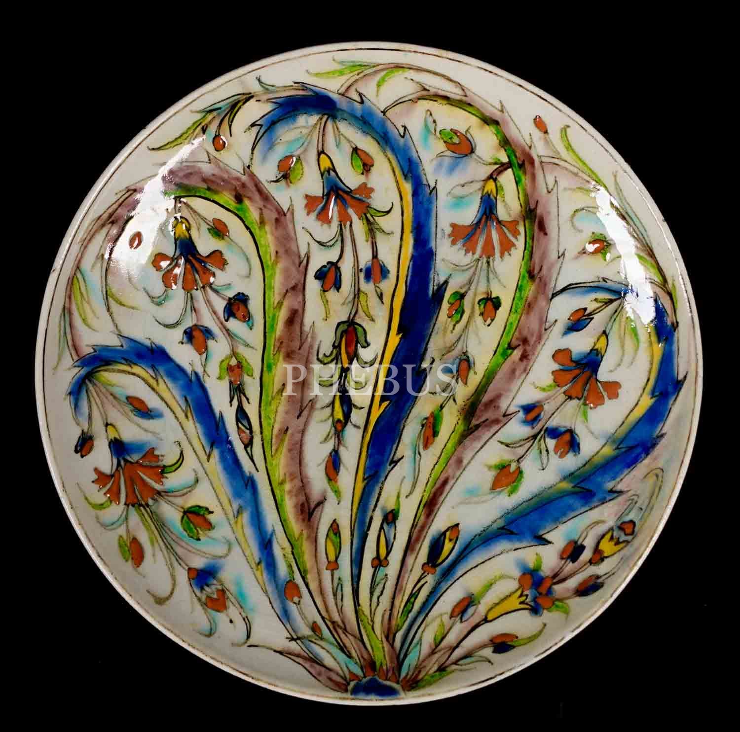 19. yüzyıl Kütahya işi tabak, 25,5 cm...