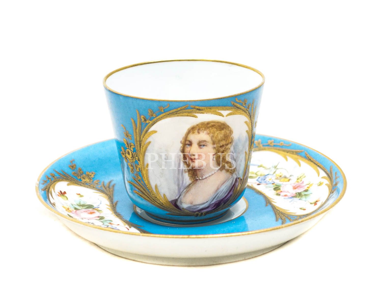 Madame de la Sabliere (Fransız Kraliyet Vakıfları Yöneticisi ve Kralın Sevgilisi) görselli, Fransız Sevres porseleni fincan, 12x6,5 cm...