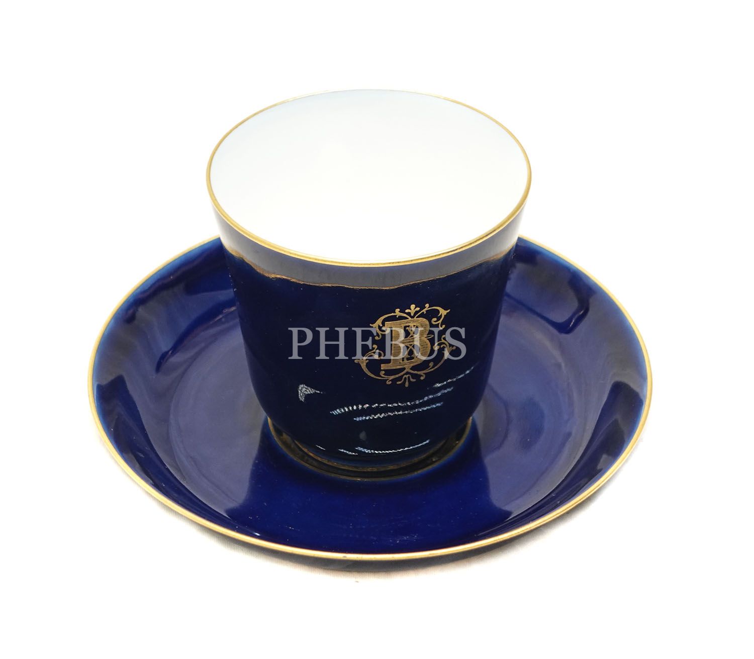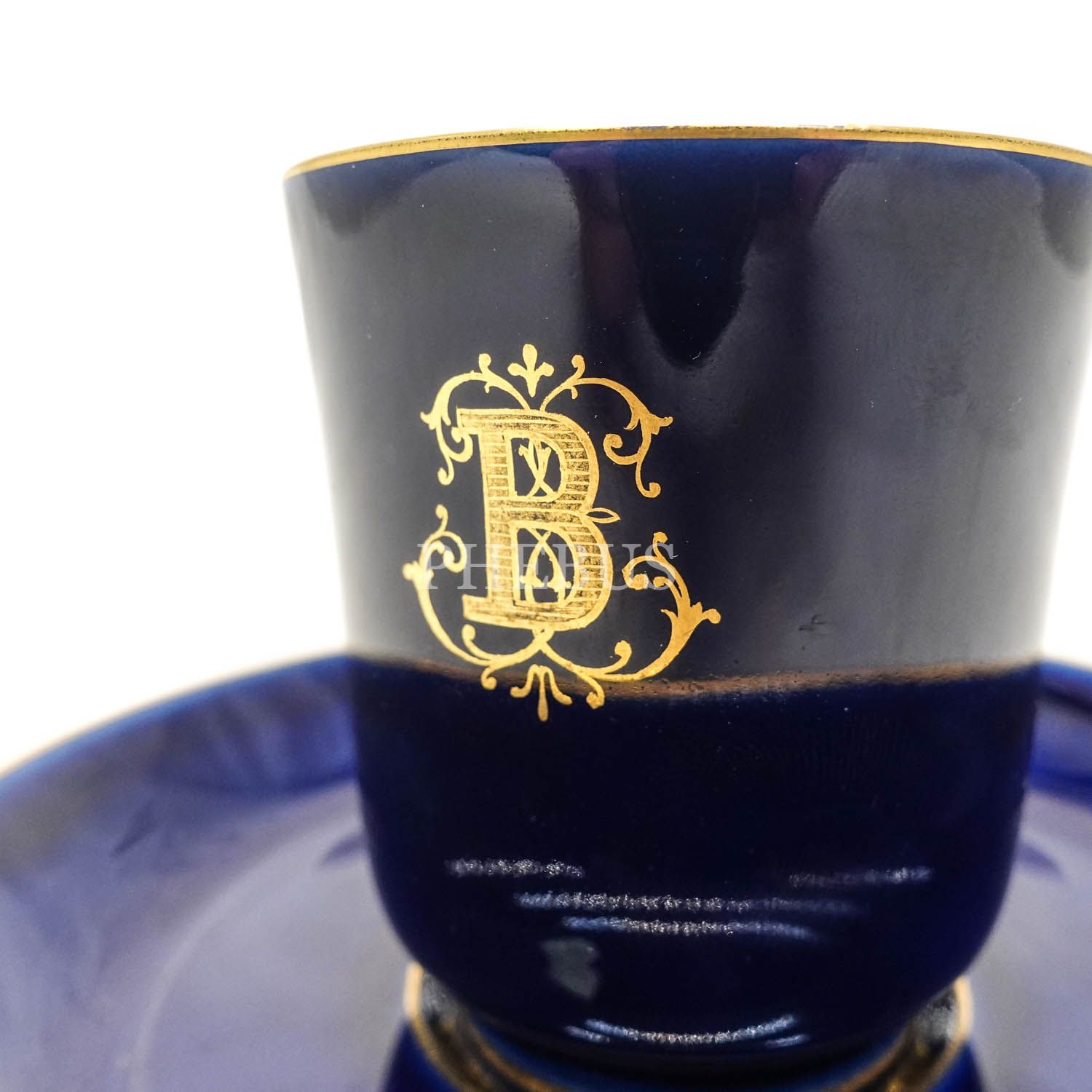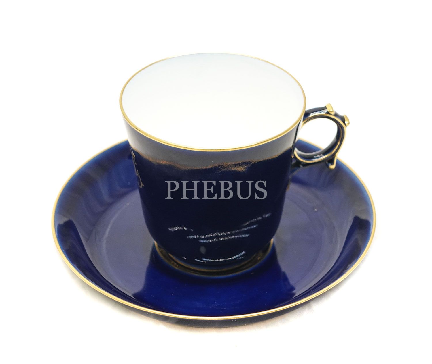 Kobalt mavisi Fransız Sevres porseleni fincan, 12x7,5 cm (nadir seri)...