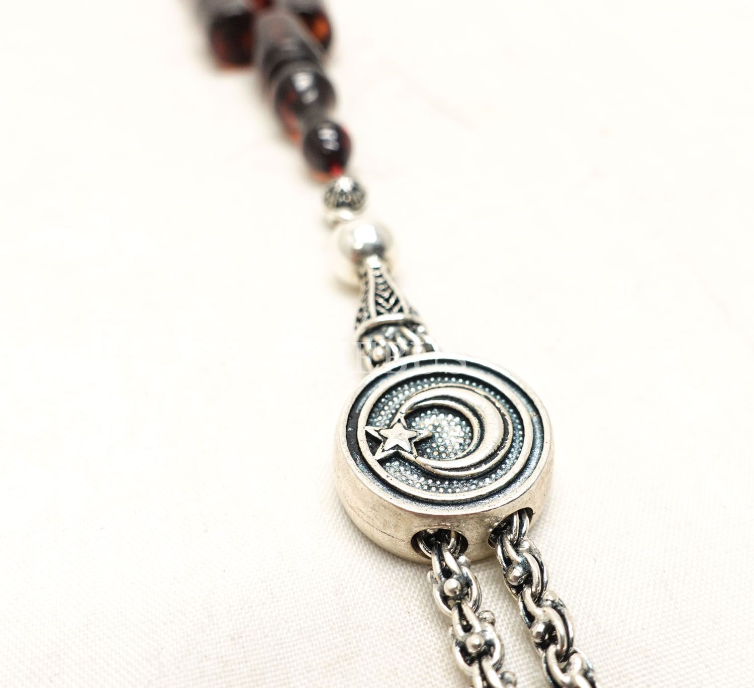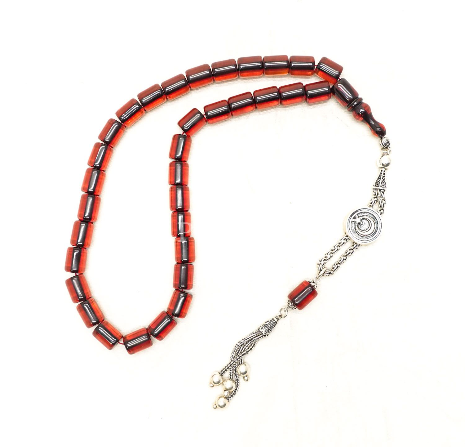Alman oyun zarından üretilmiş ateş kehribarı tespih...