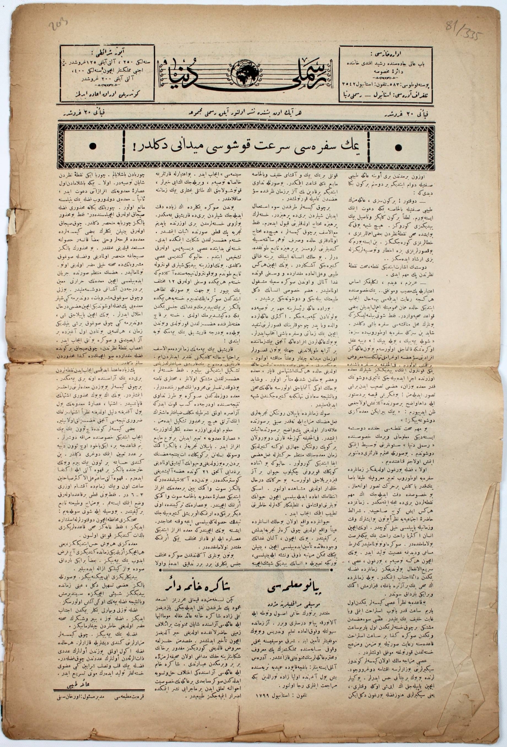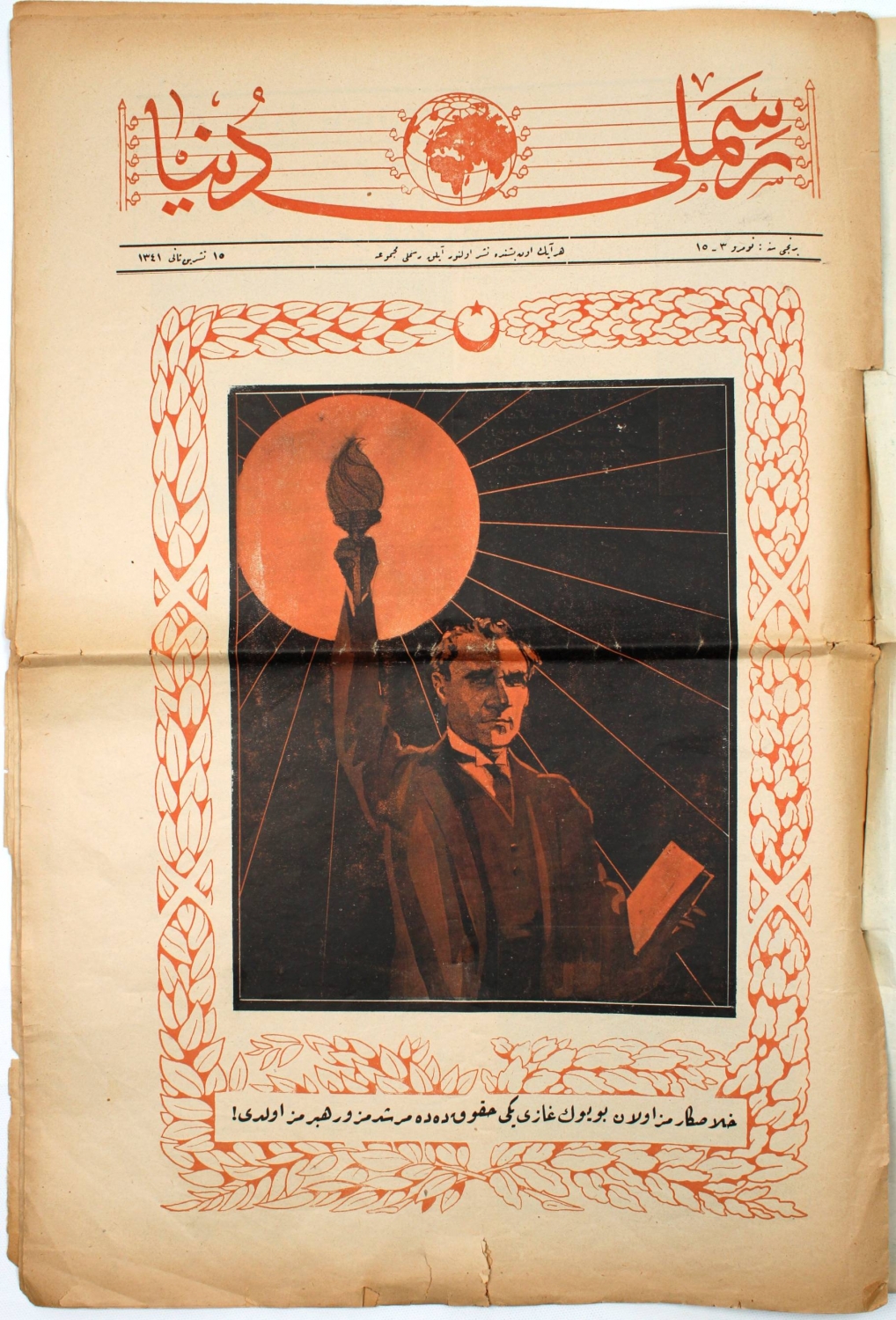 Osmanlıca Resimli Dünya mecmuası, 1341 tarihli, haliyle, 16 sayfa, 30x44 cm