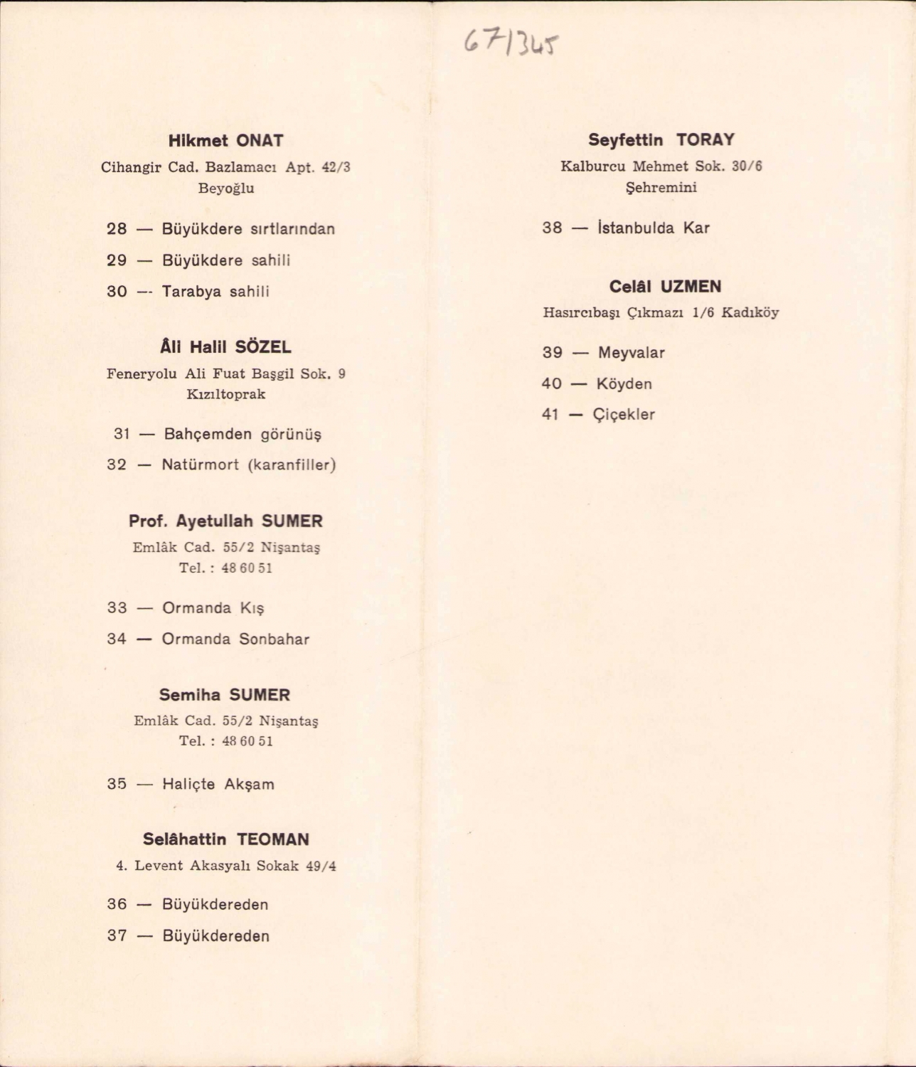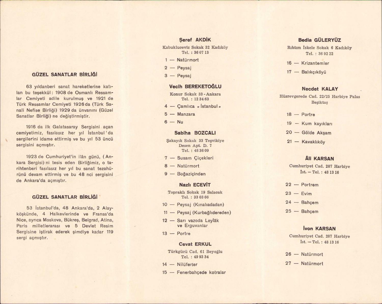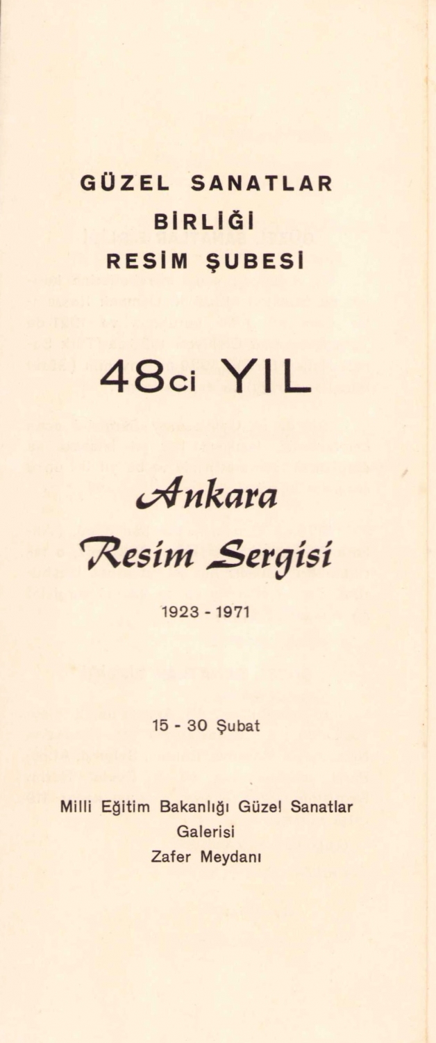 Güzel Sanatlar Birliği Resim Şubesi 48 inci Yıl Ankara Resim Sergisi 1923 -1971 programı, Milli Eğitim Bak. Güzel Sanatlar Galerisi, Zafer Meydanı, 10x23 cm