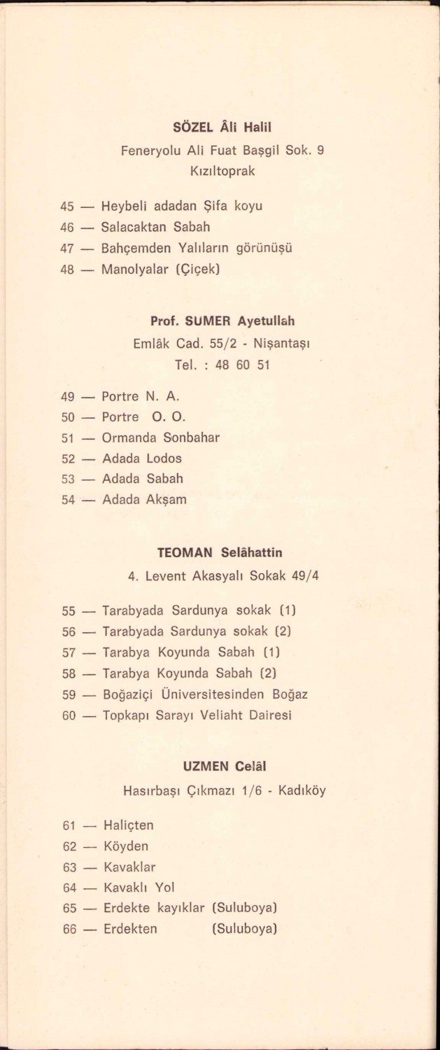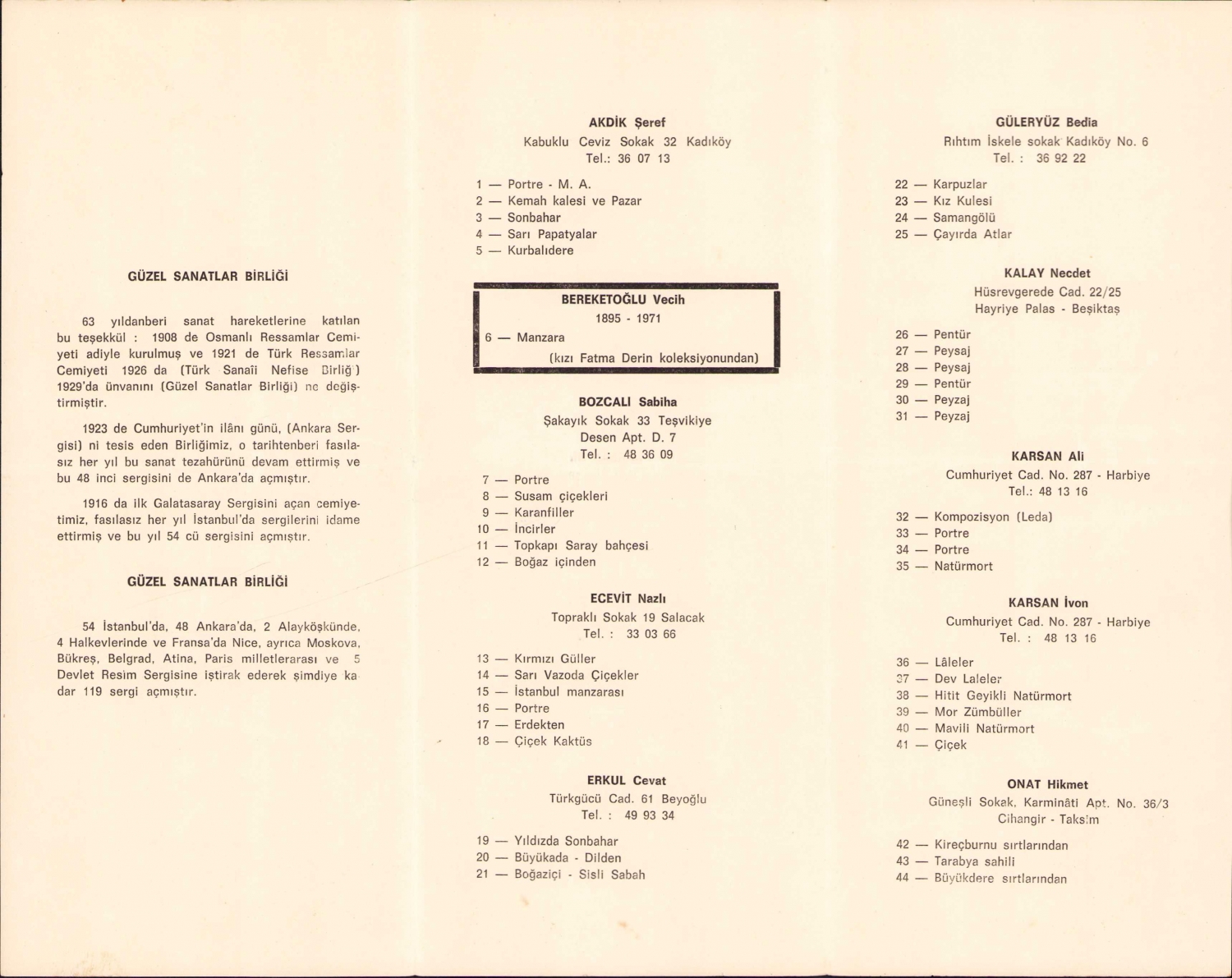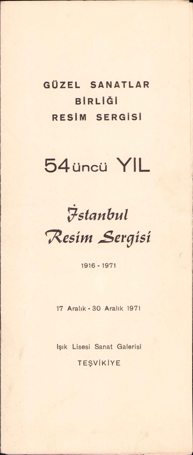 Güzel Sanatlar Birliği Resim Şubesi 54 üncü Yıl İstanbul Resim Sergisi 1916 - 1971 programı, Işık Lisesi Sanat Galerisi, Teşvikiye, 10x23 cm