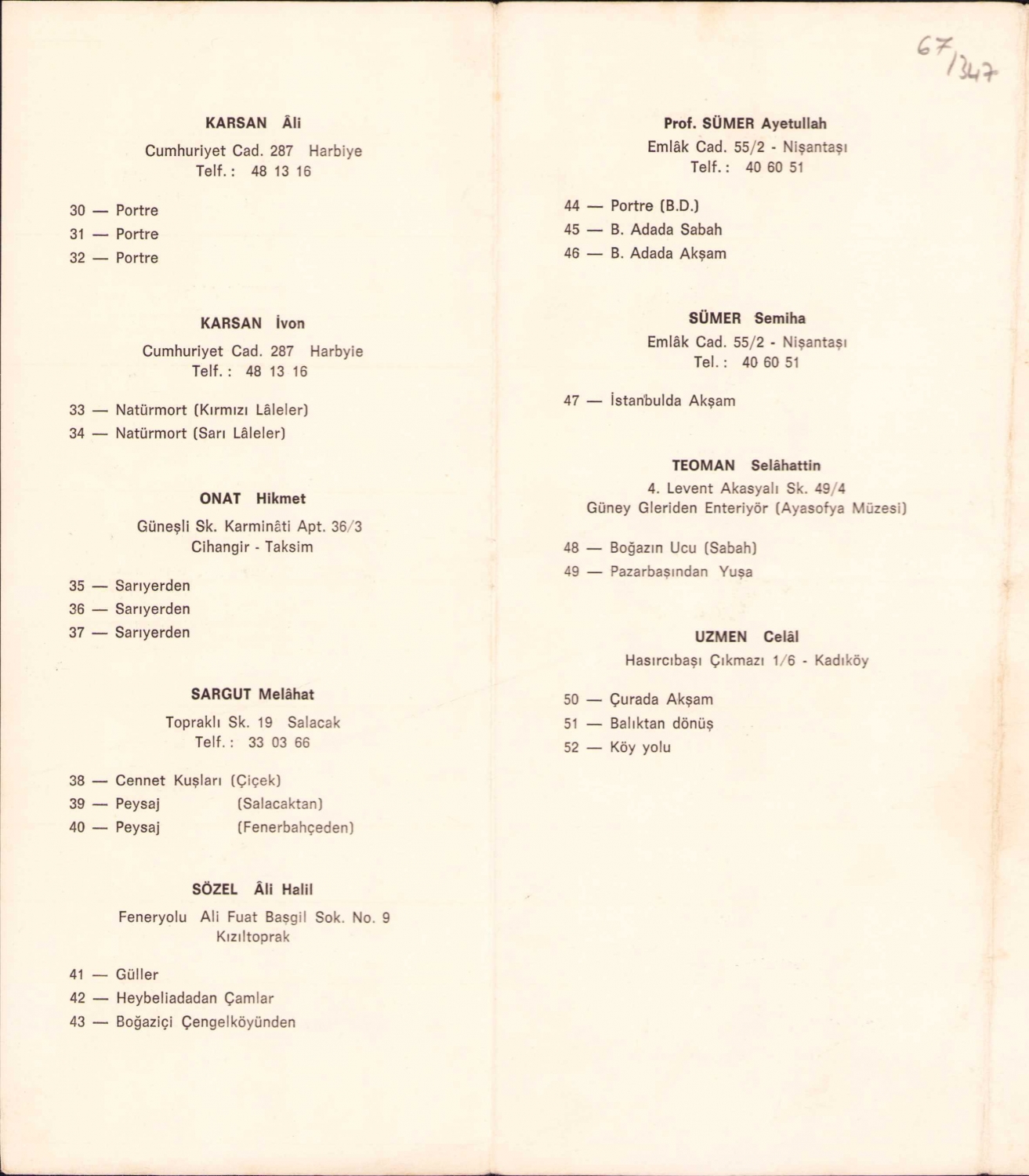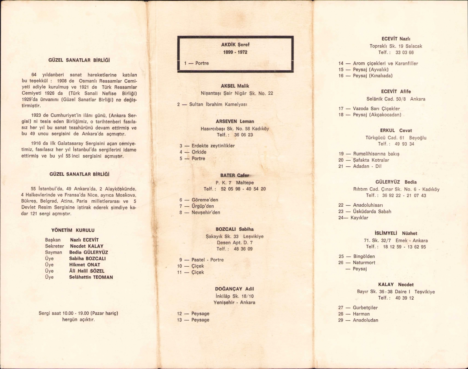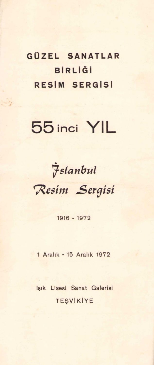 Güzel Sanatlar Birliği Resim Şubesi Güzel Sanatlar Birliği Resim Şubesi 55 inci Yıl İstanbul Resim Sergisi 1916 - 1972 programı, Işık Lisesi Sanat Galerisi, Teşvikiye, 10x23 cm