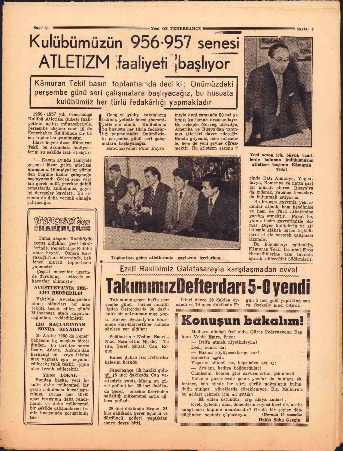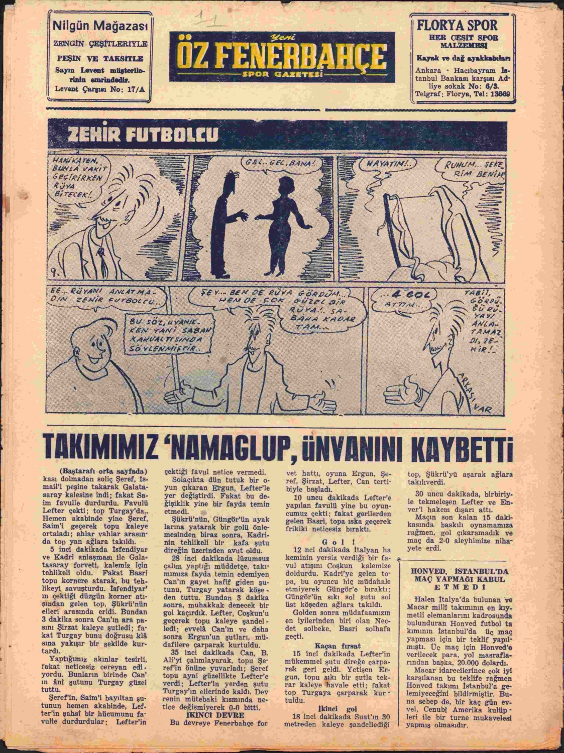 Yeni Öz Fenerbahçe - spor gazetesi, 1956, "Namağlup Ünvanını Kaybettik", 16 sayfa, 25x34 cm