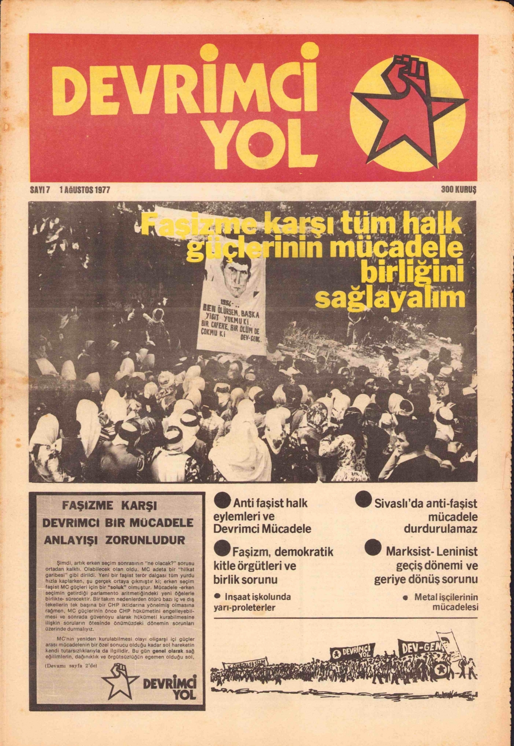 Devrimci Yol, 1977, "Faşizme Karşı Tüm Halk Güçlerinin Mücadele Birliğini Sağlayalım", 16 sayfa, 28x42 cm
