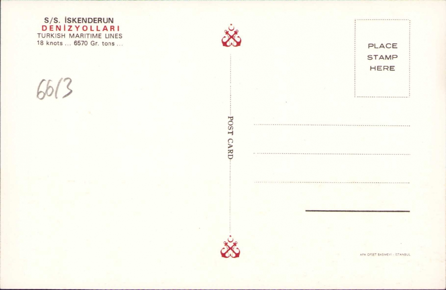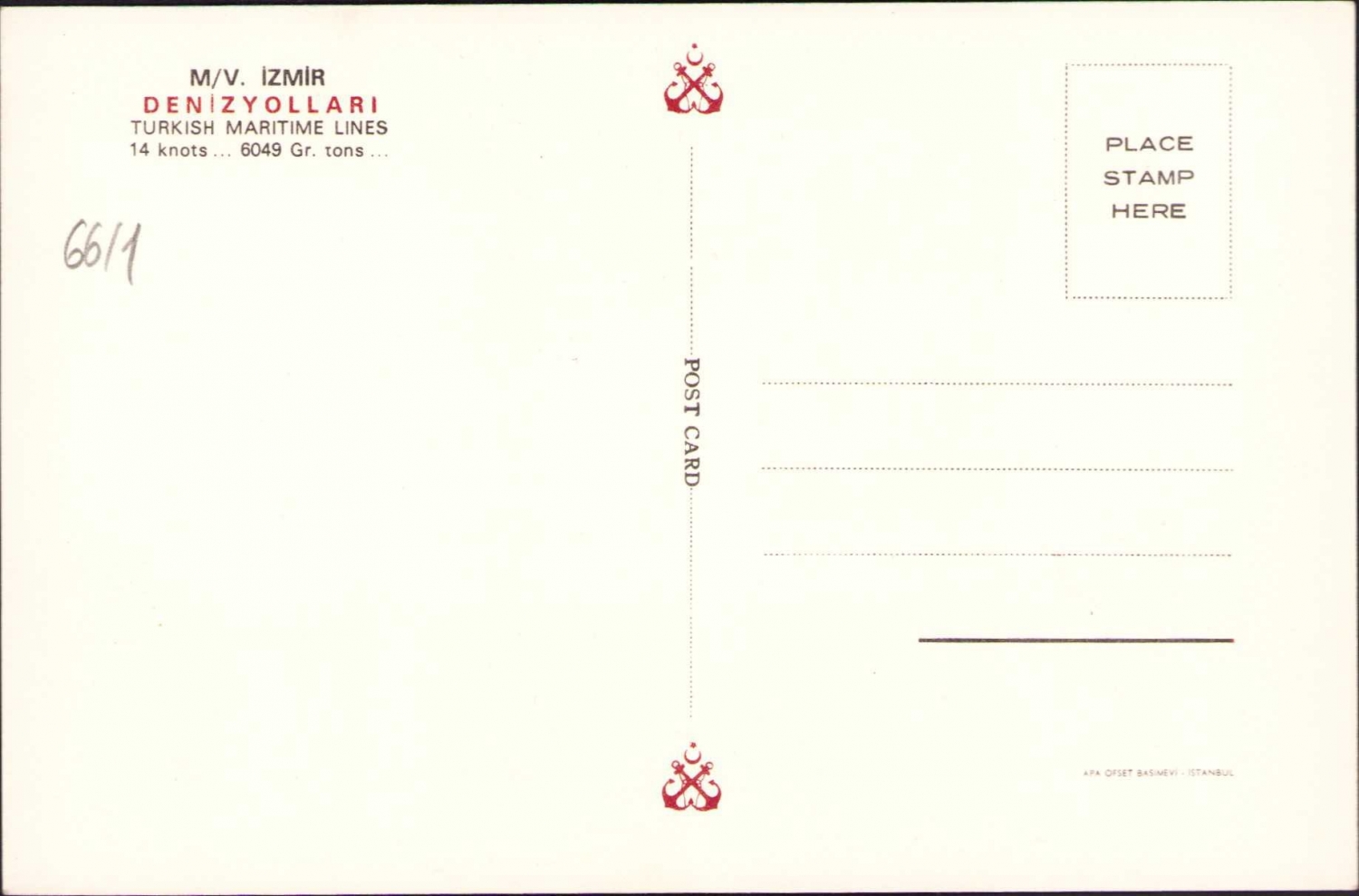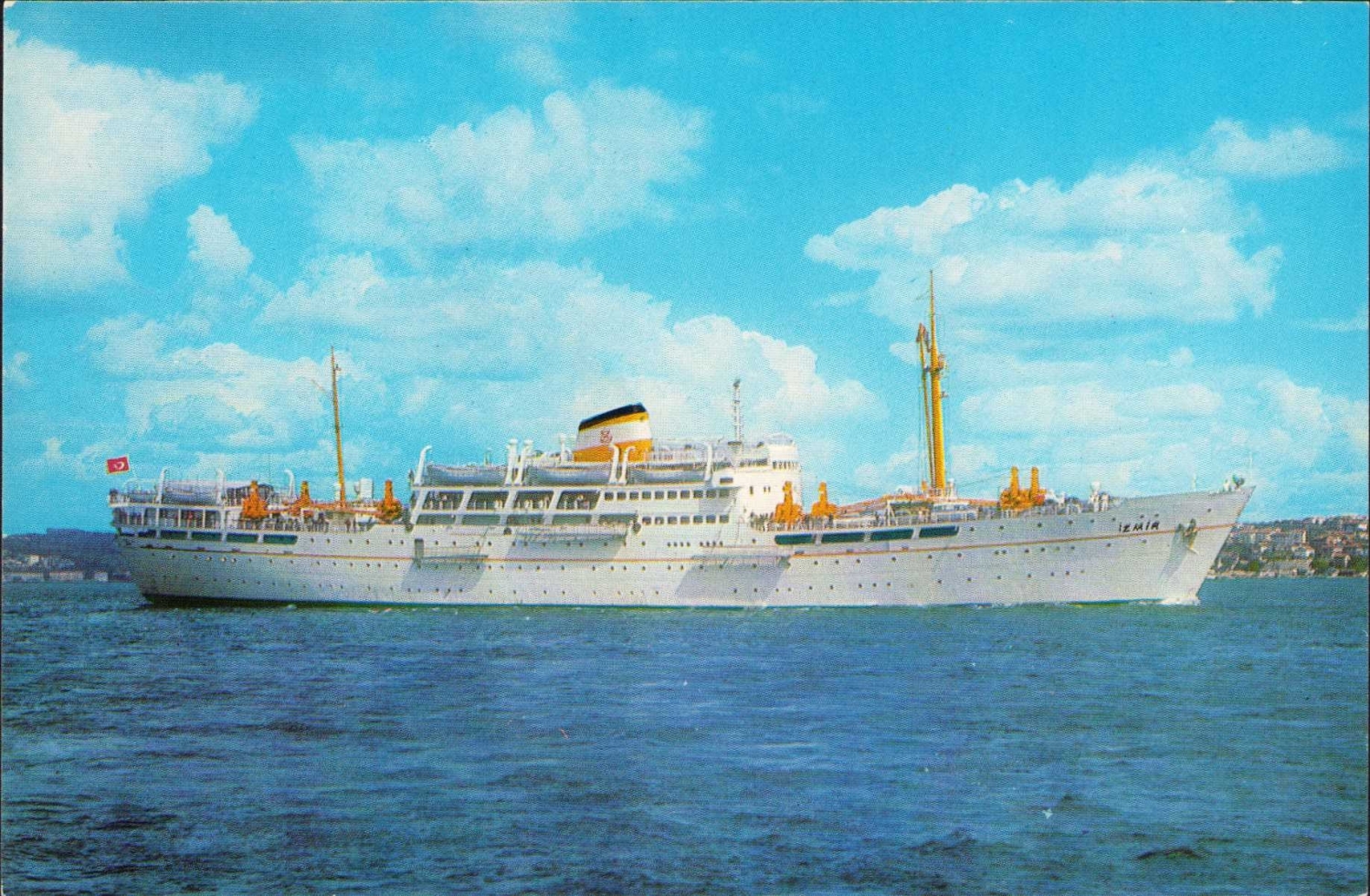 Denizyollarına ait İzmir, Karadeniz, İskenderun ve Samsun isimli gemi kartpostalları