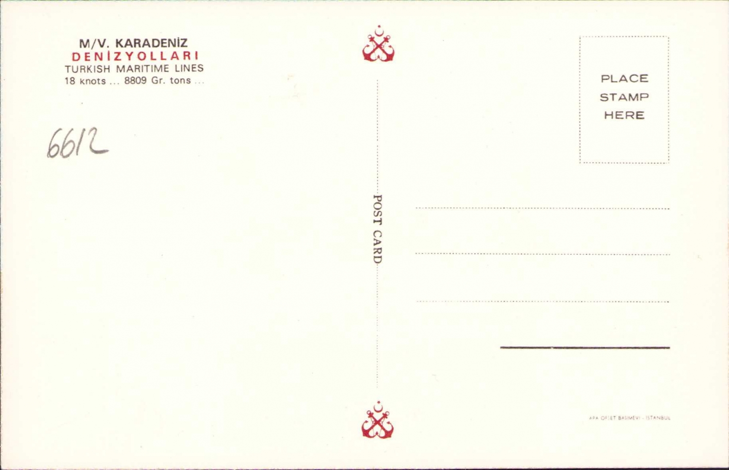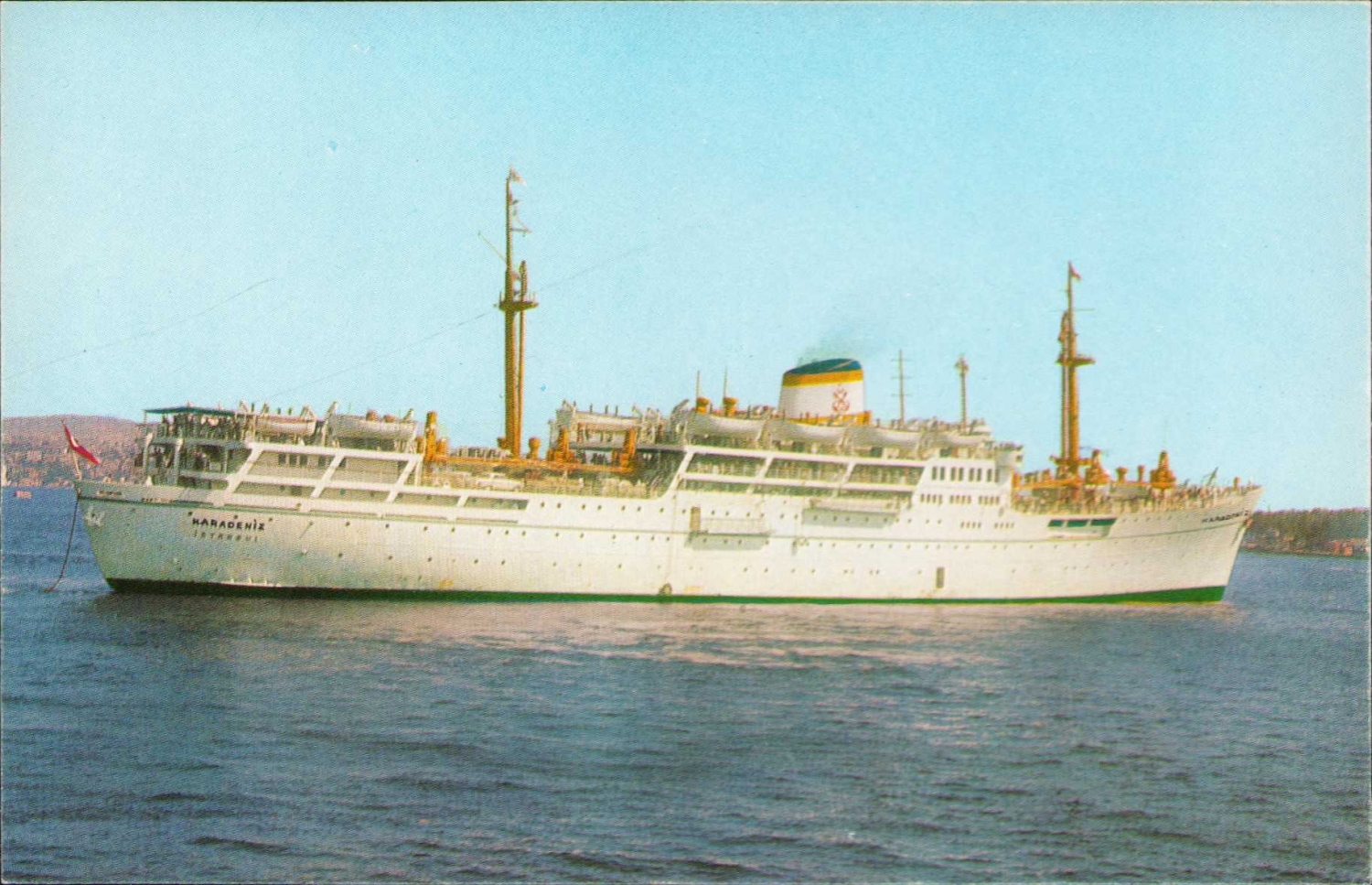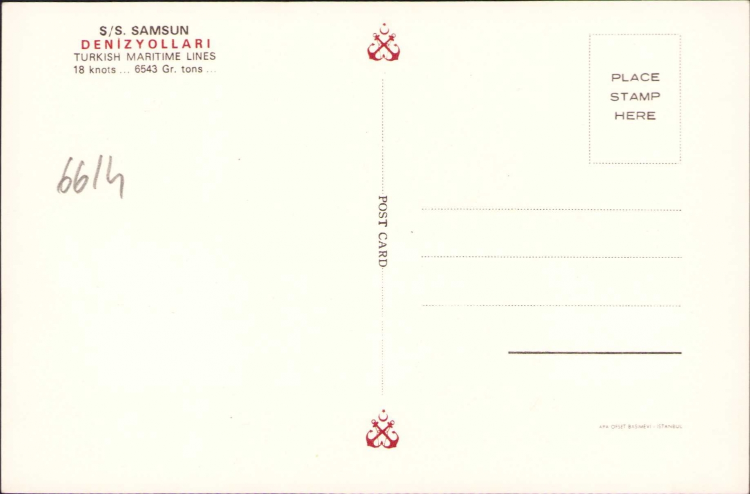 Denizyollarına ait İzmir, Karadeniz, İskenderun ve Samsun isimli gemi kartpostalları