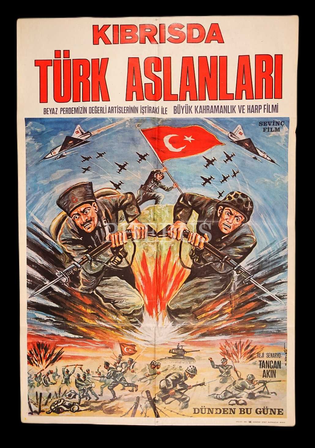 KIBRISDA TÜRK ASLANLARI: Beyaz Perdemizin Değerli Artislerinin İştirakı İle Büyük Kahramanlık ve Harp Filmi (Sevinç Film), 68x100 cm...