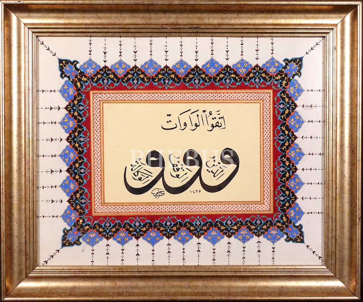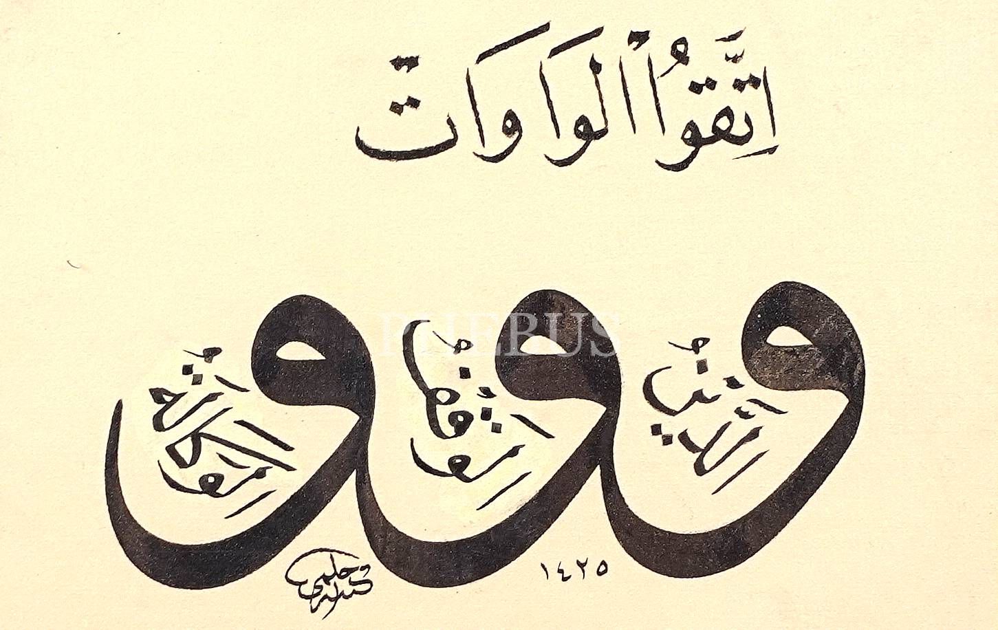 Hilmi ketebeli, 1425 tarihli "İtteku´l Vâvât" yazılı sülüs-nesih levha, 45x37 cm...