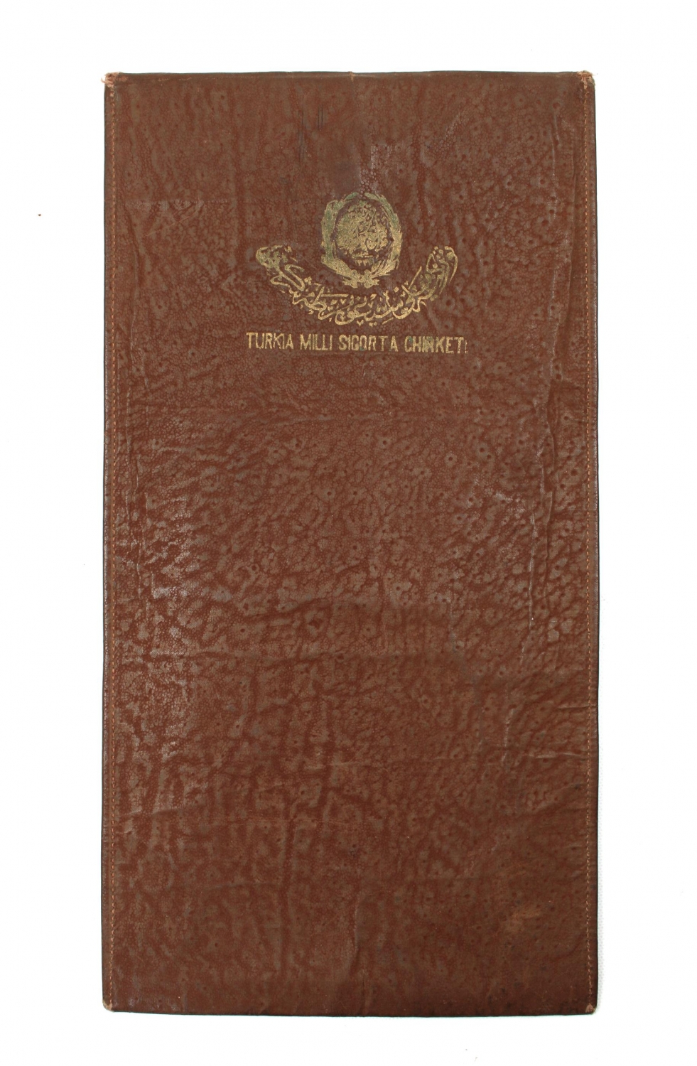 Osmanlıca Fransızca Türk Milli Sigorta Şirketi yazılı deri cüzdan, 15x29 cm