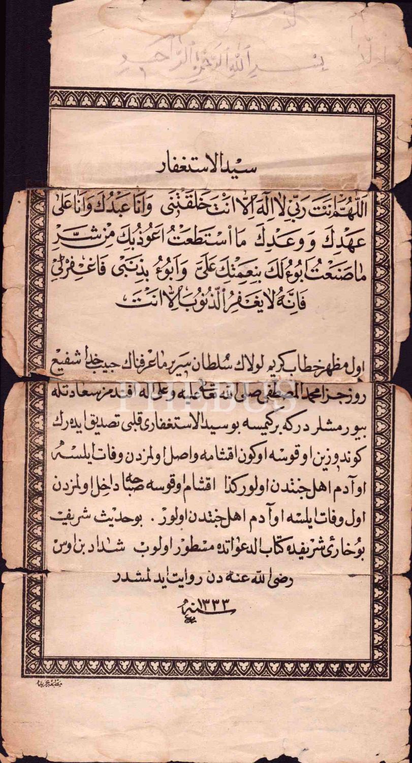 1331 tarihli Seyyidü´l İstiğfar, 17x31 cm...