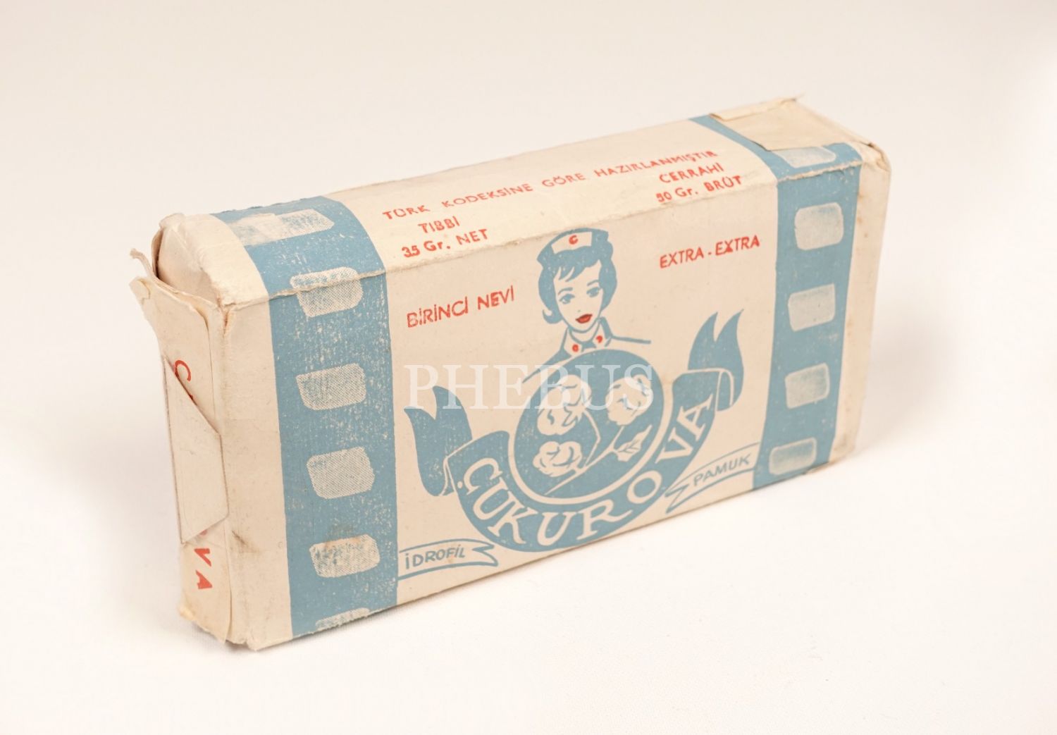 Orijinal kutusunda Gerçek Ticaret Ltd. Şti. (Adana) üretimi "ÇUKUROVA İDROFİL PAMUK", 16x8 cm...