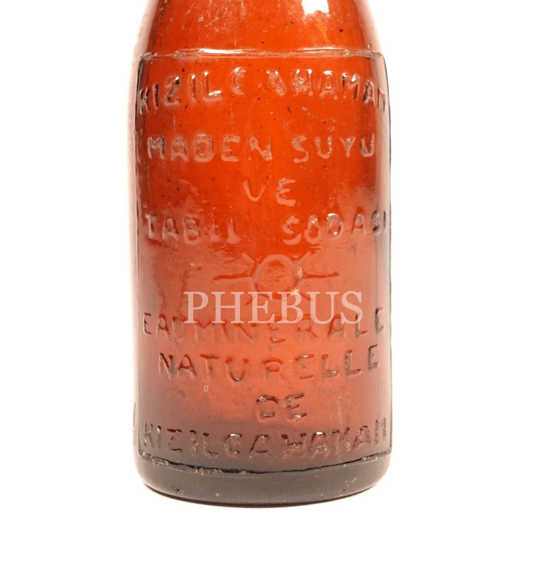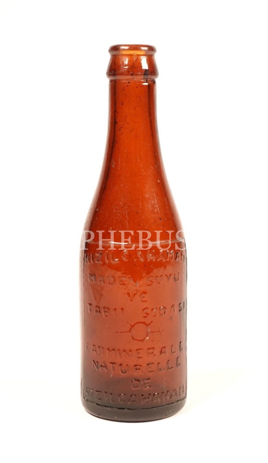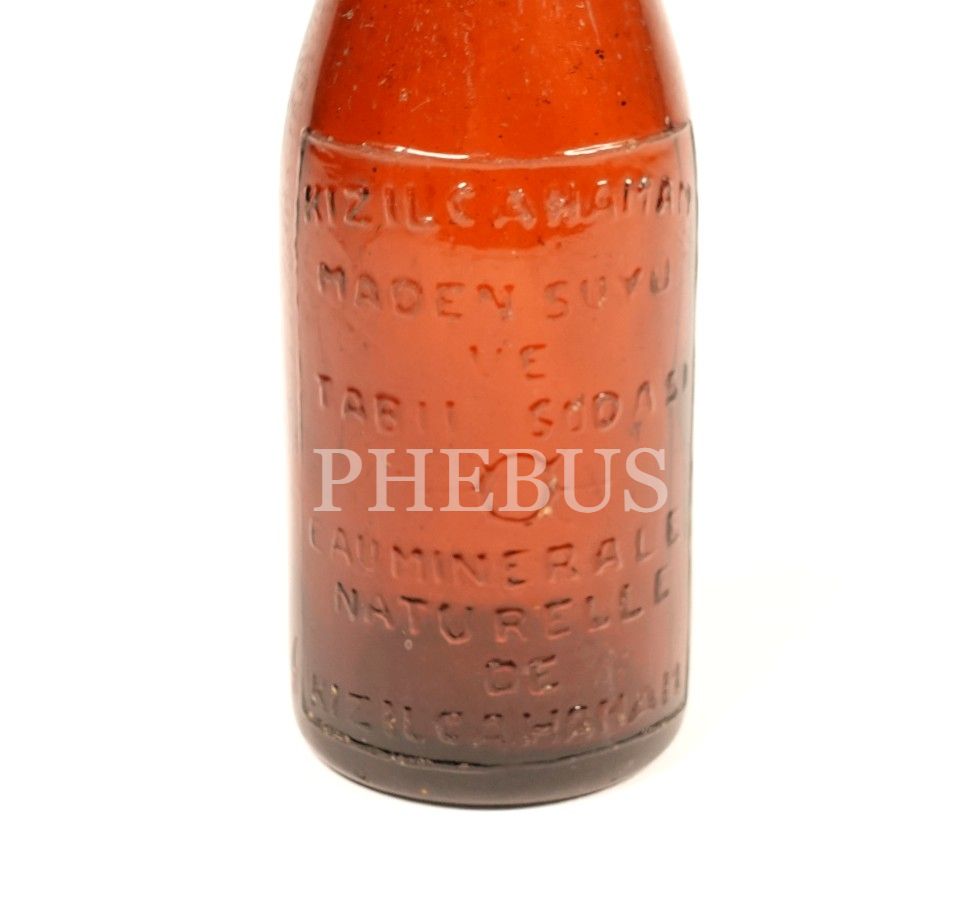 Türkçe-Fransızca kabartma yazılı "KIZILCAHAMAM MADEN SUYU VE TABİİ SODASI" şişesi, boş, 19x5 cm...