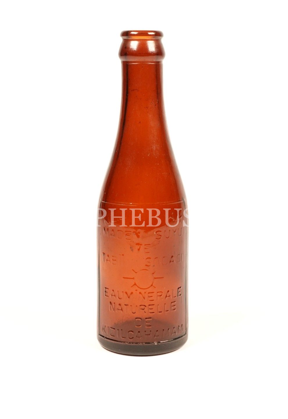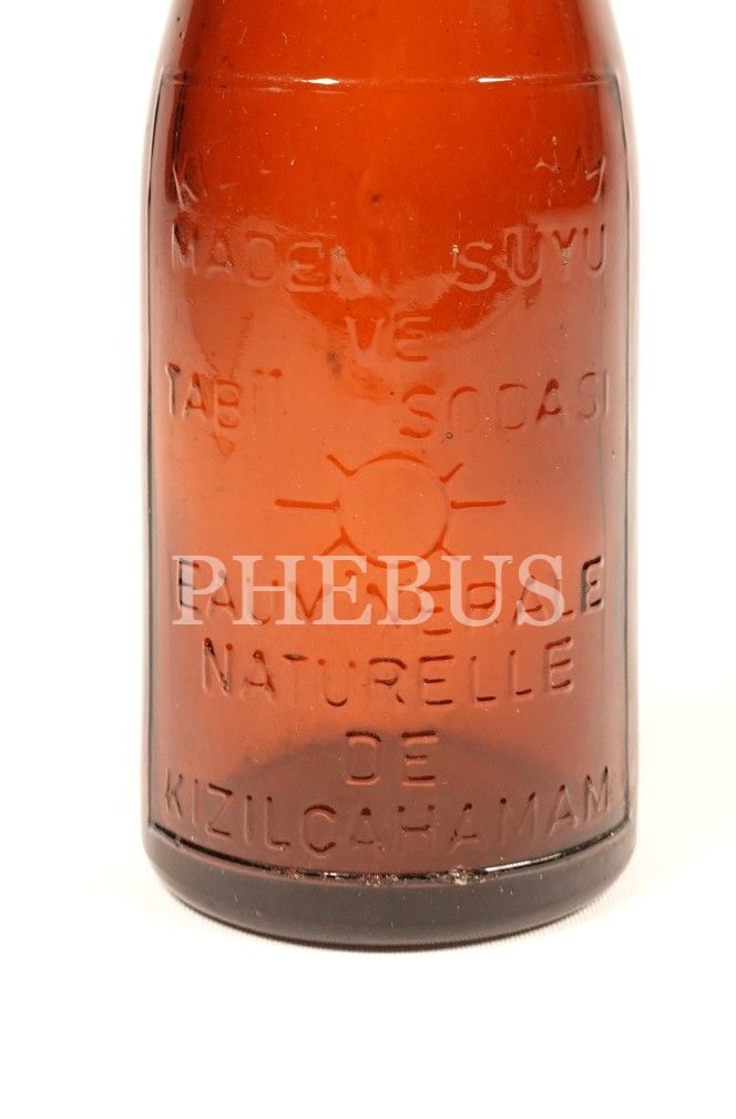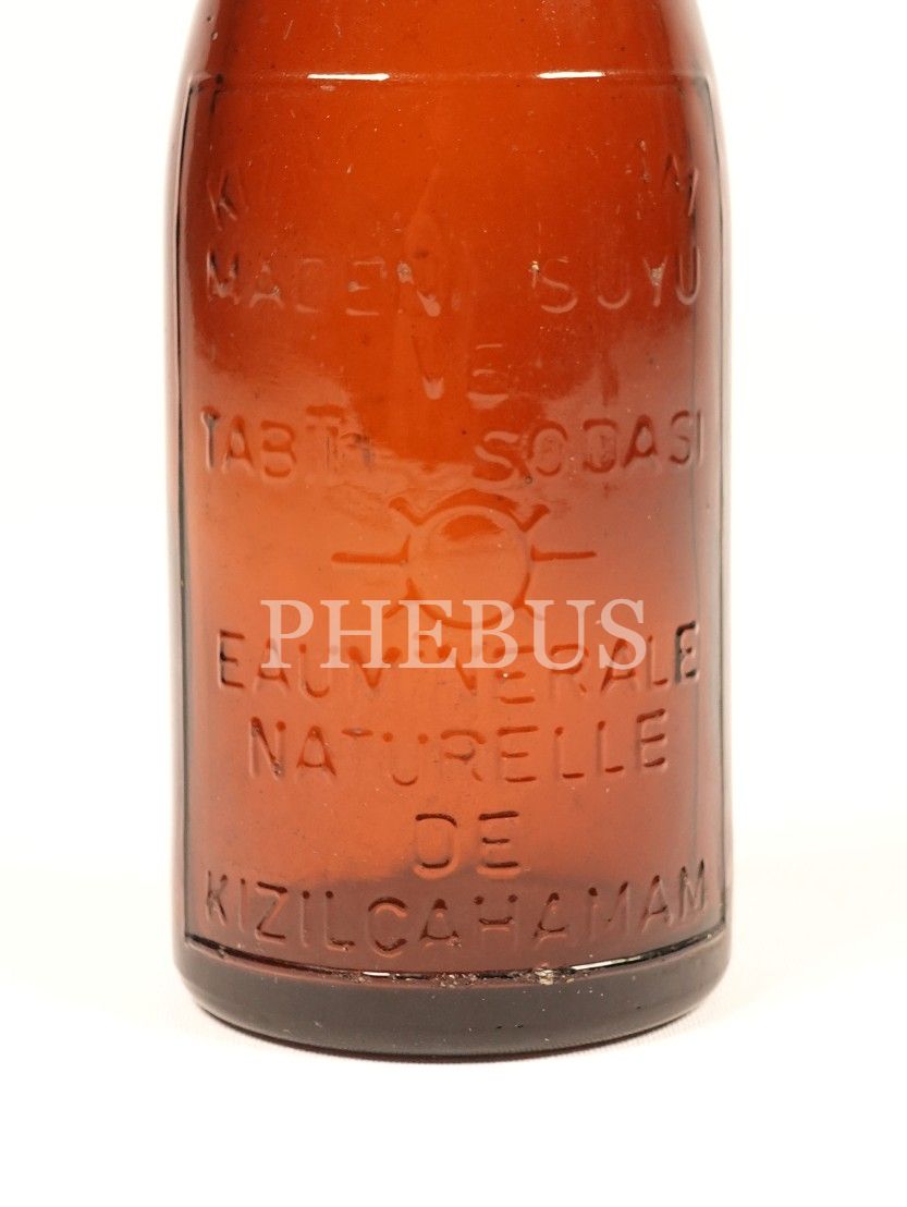 Türkçe-Fransızca kabartma yazılı "KIZILCAHAMAM MADEN SUYU VE TABİİ SODASI" şişesi, boş, 19x5 cm...