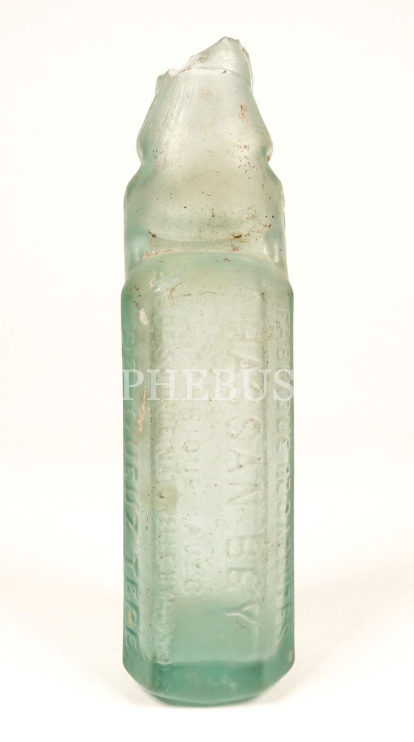 Osmanlıca-Fransızca kabartma yazılı "HASAN BEY GAZOZU ´de Gueuz Tepe´ (Göztepe)" şisesi, 22x6 cm...