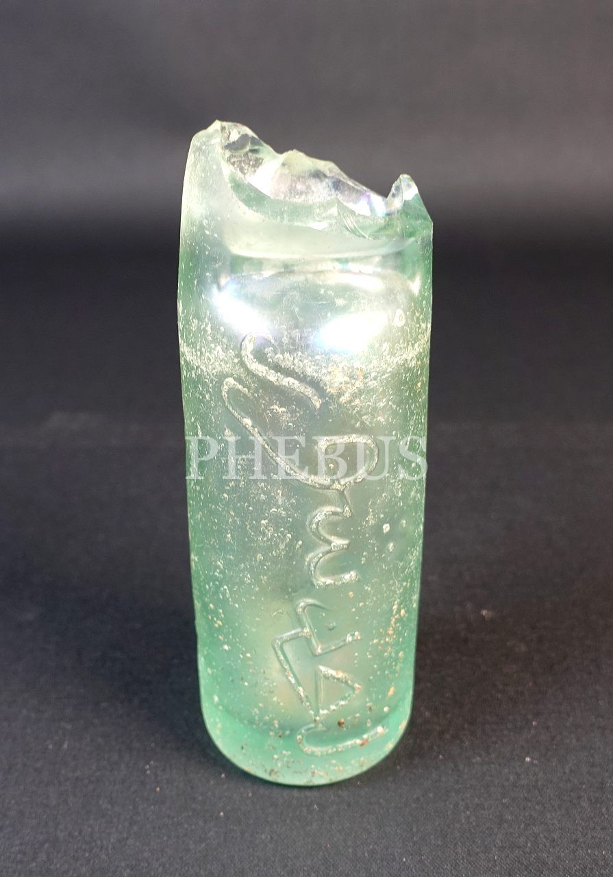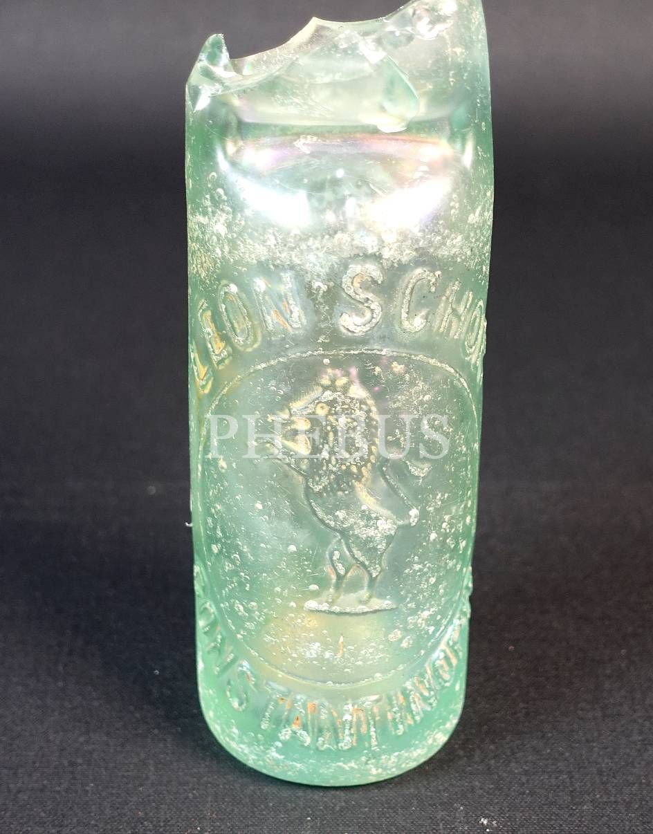 Osmanlıca-Fransızca kabartma yazılı "LEON SCHOR (Constantinople)" gazozu şişesi,18x6 cm...