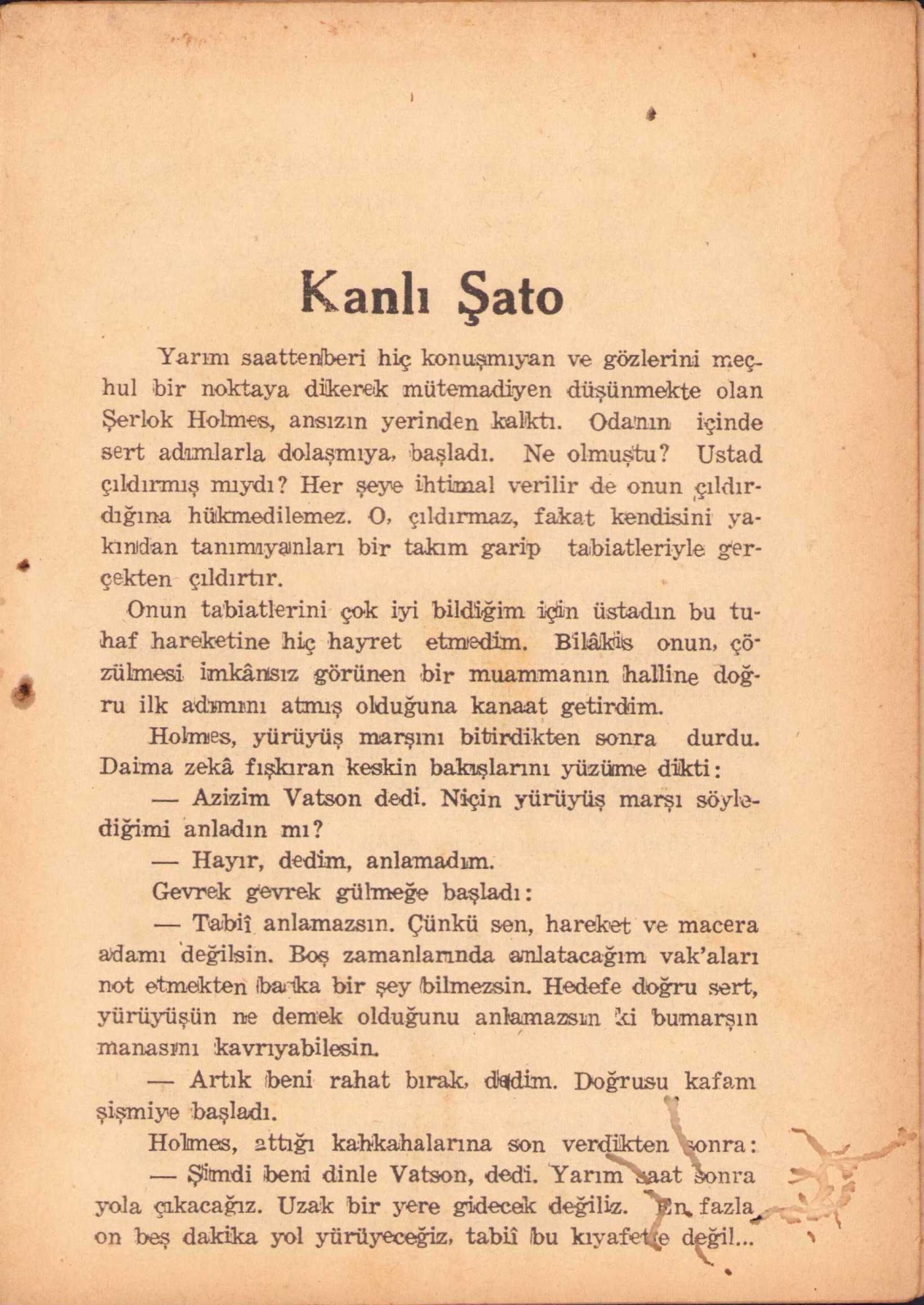 Meşhur Polis Hafiyesi Şerlok Holmes - Kanlı Şato,İstanbul, 1954, sayfaların bir kenarı haliyle, 16 sayfa, 14x20 cm