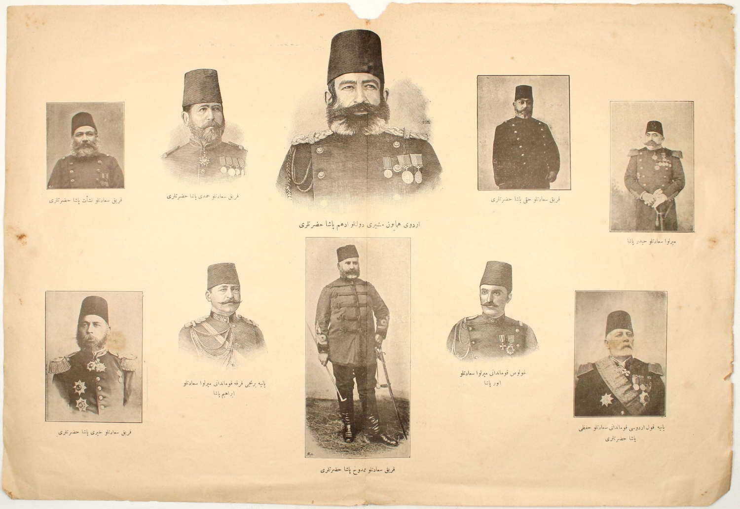 Osmanlı Paşalarının olduğu poster, Ethem Paşa, Memduh Paşa, Enver Paşa, Hıfzı Paşa, Hıdır Paşa, Hakkı Paşa, 50x35 cm