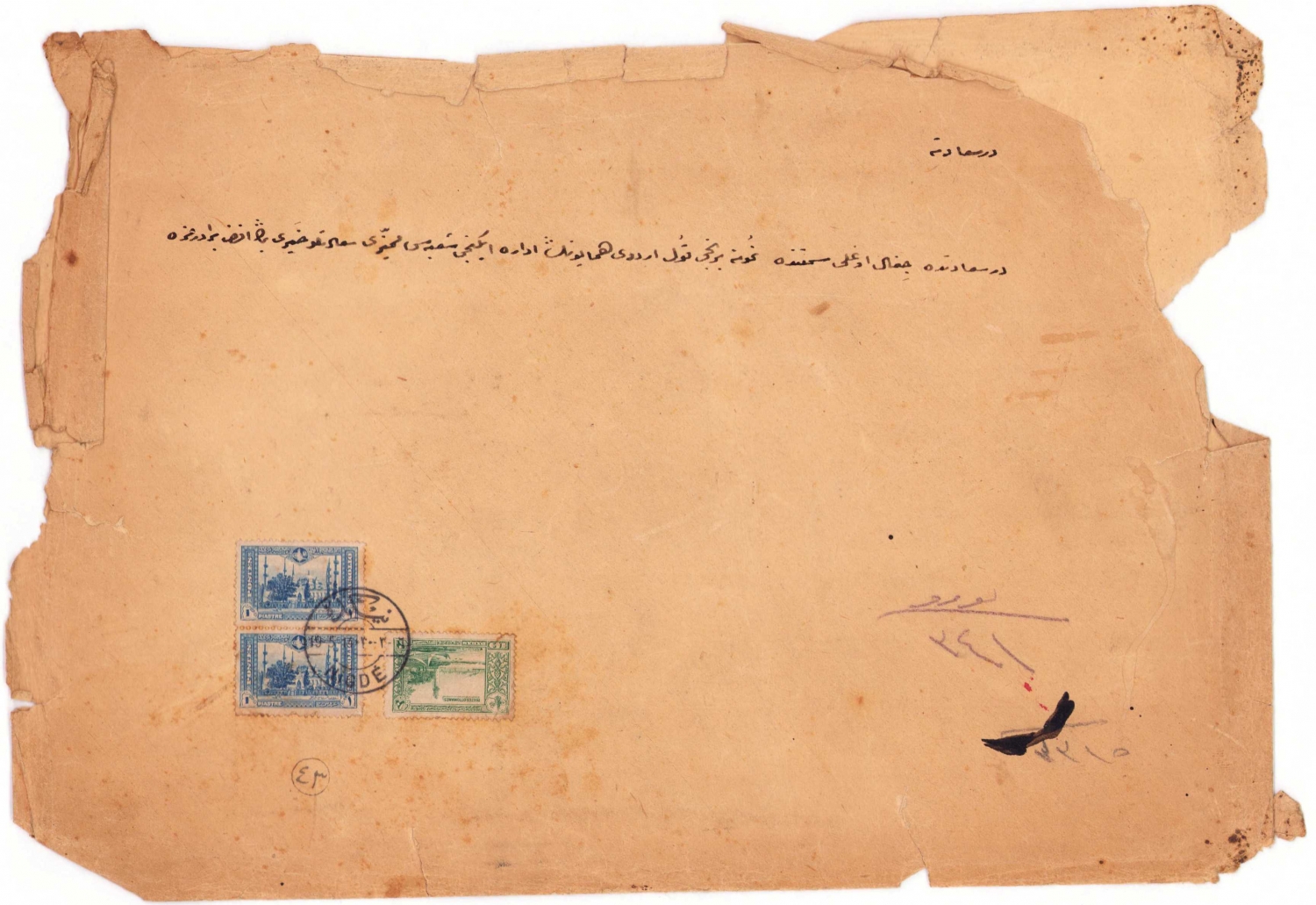 Osmanlı Dersaadet - Cağaloğlu semti birinci kolorduyu hümayunun irade i ikinci şubesi Hayri Paşaya gönderilmiş zarf, 24x34 cm