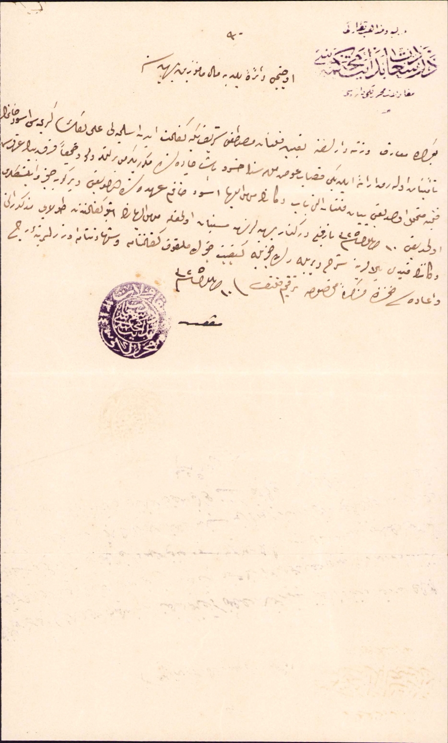 Osmanlı Dersaadet Bidayet Mahkemesi'nden üçüncü daireyi belediye mal memurluğu behiyyelerine, Mustafa Şerif beyin kefaleti hakkında 1325 tarihli, 16x26 cm