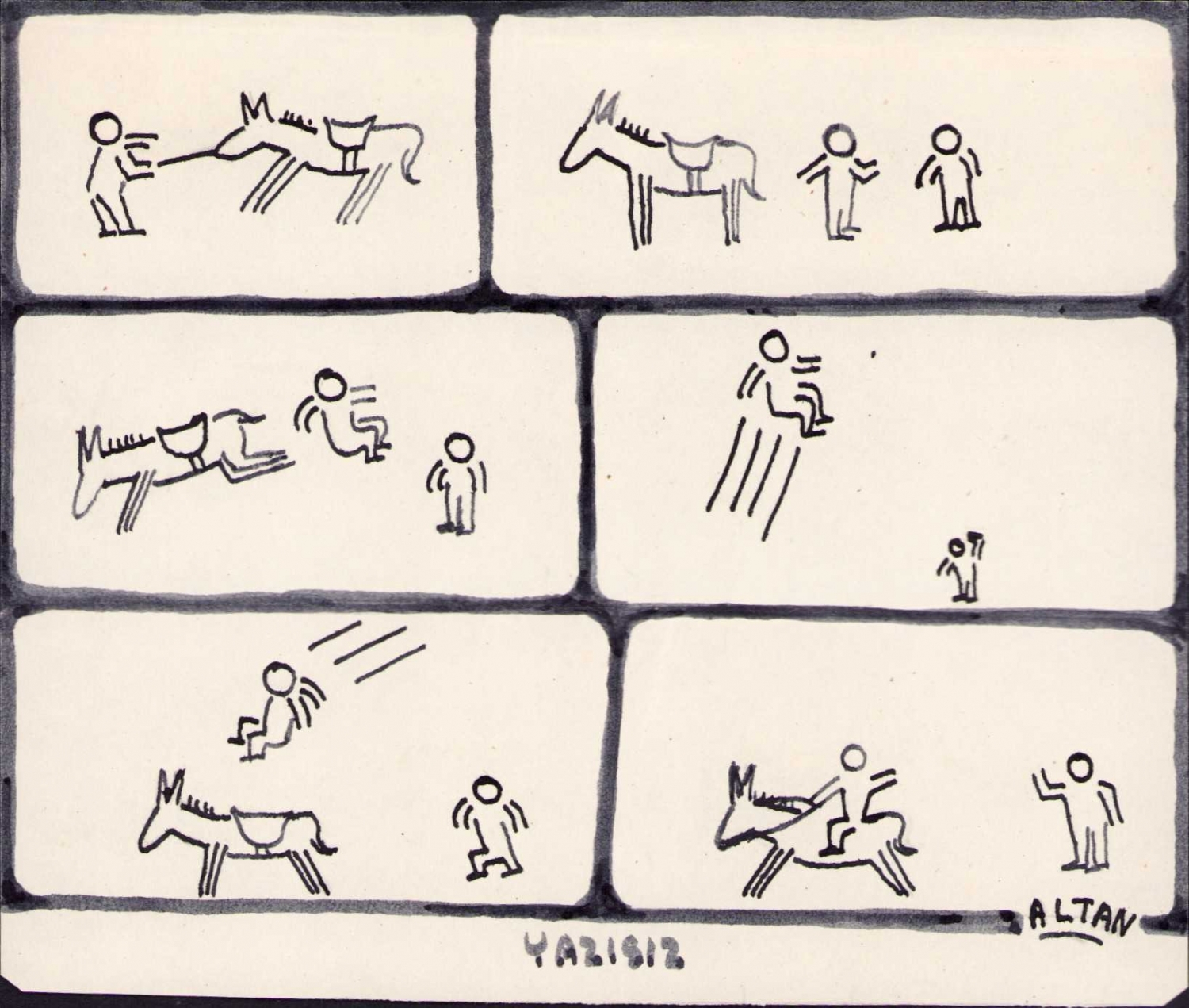 Altan imzalı karikatür çizim, 13x11 cm
