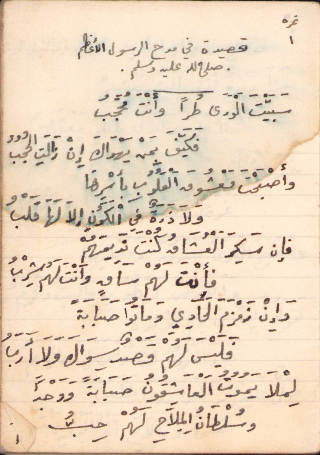 Arapça el yazma Kaside defteri, Hulusi Bey, 1357 tarihli, 22 sayfa, 10x14 cm