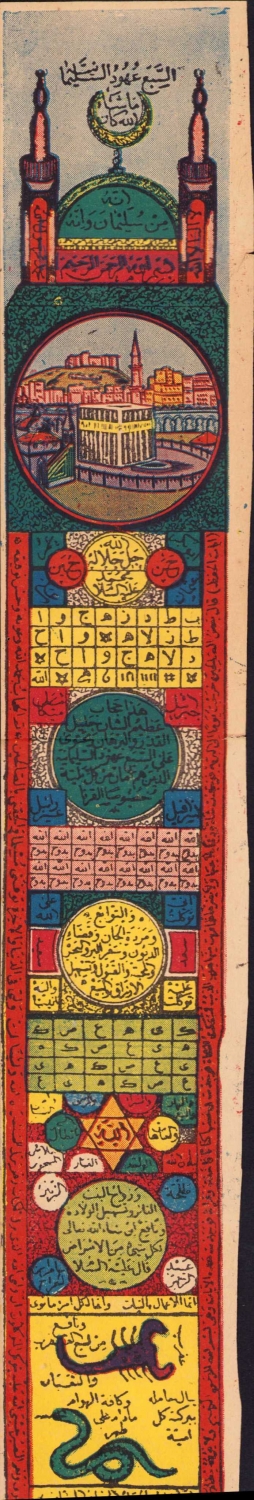 Arapça vefk, bazı bölümlerinde burçlar ve tılsım yazılı, 7x195 cm