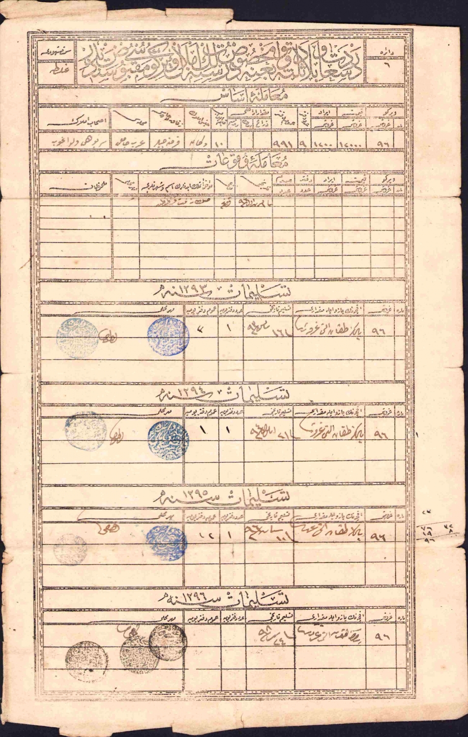 Osmanlıca Dersaadete mahsus emlak vergisi, 1298 tarihli, haliyle, 23x35 cm