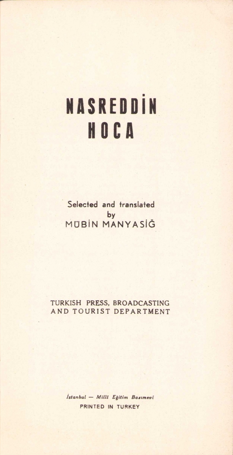 Nasreddin Hoca, Mübin Manyasiğ, İstanbul, resimli, 32 sayfa, 10x20 cm
