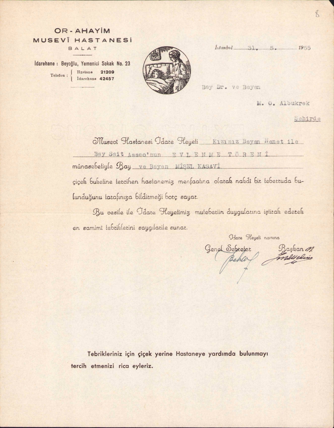 Or - Ahayim Musevi Hastanesi, Balat antetli doküman, 20x30 cm