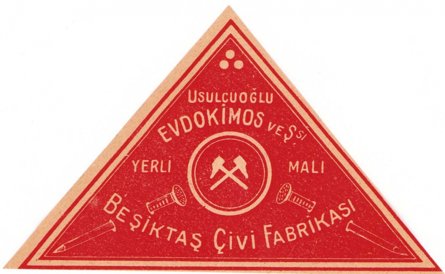 Usulcuoğlu Evdokimos - Beşiktaş Çivi Fabrikası etiketi, 14x8 cm