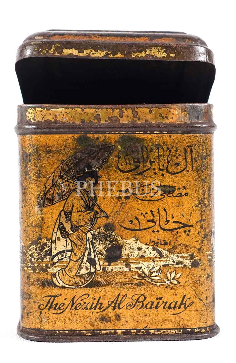 Osmanlıca Albayrak Mustafa Nezih Çayı teneke kutusu, 9 cm…