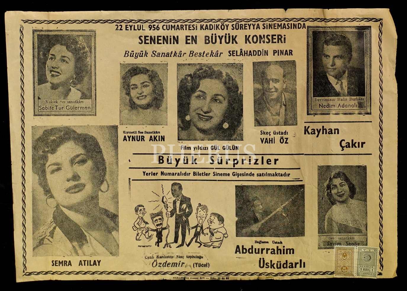Kadıköy Süreyya Sinemasında 1956 Senesi Büyük Gösteri afişi, 28x40 cm…