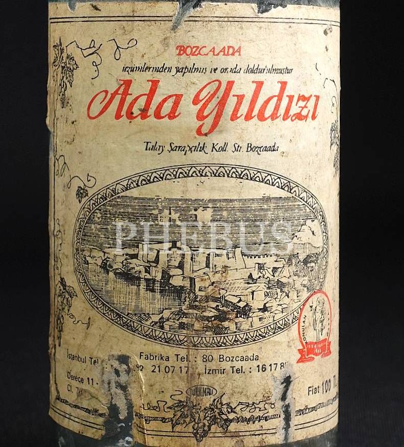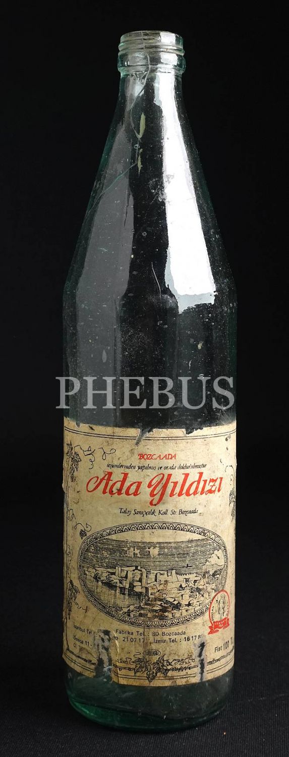 Ada Yıldızı şarap şişesi (Bozcaada üzümlerinden yapılmış ve orada doldurulmuştur), 29x7 cm...