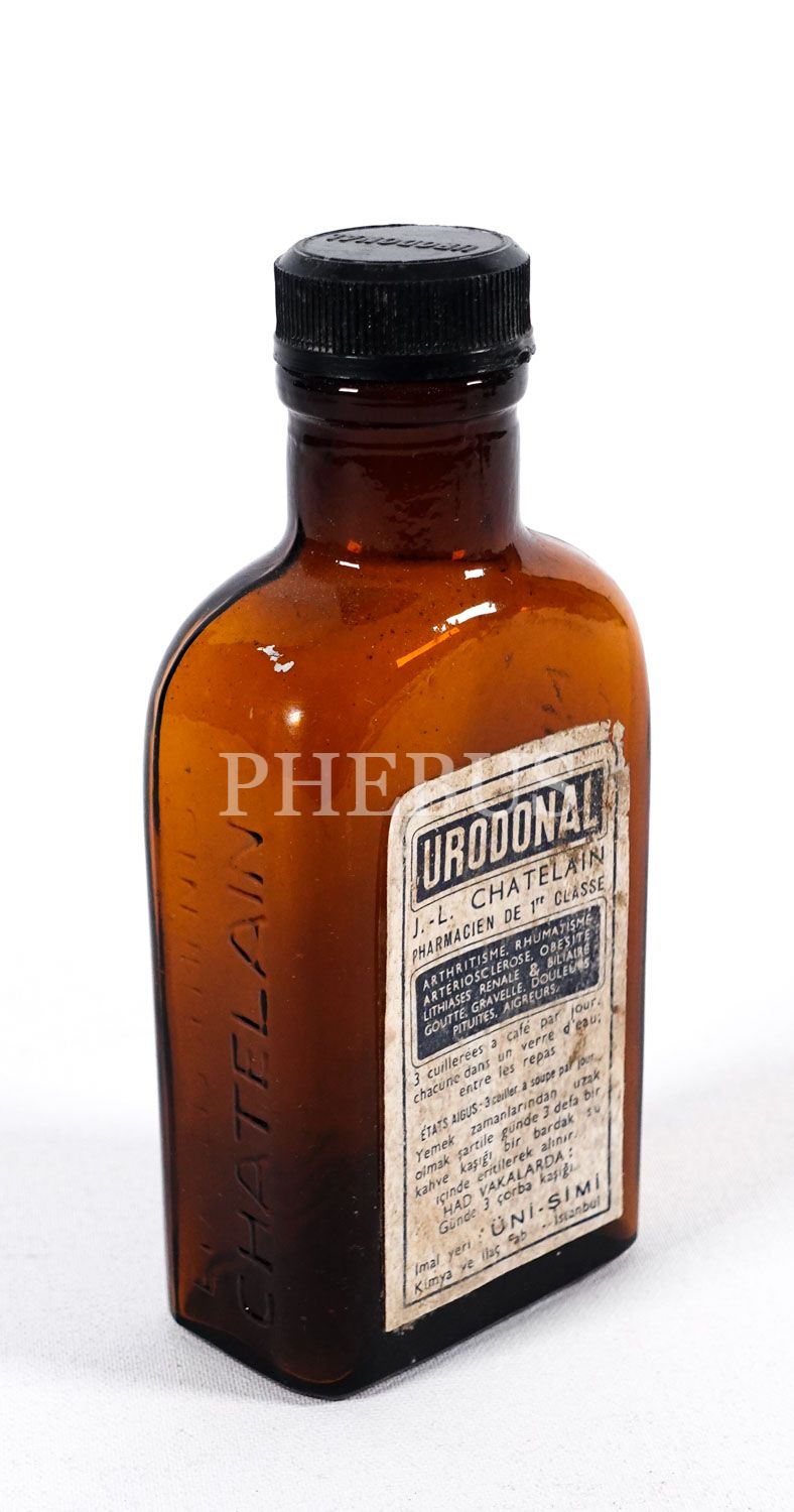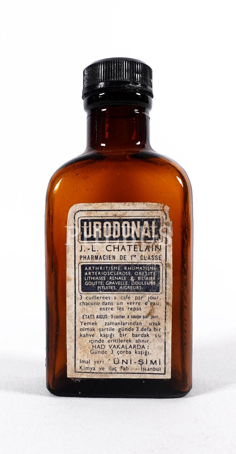 Etablissements Chatelan kabartma yazılı ve Türkçe etiketli Urodonal şişesi, 15x3x4 cm...