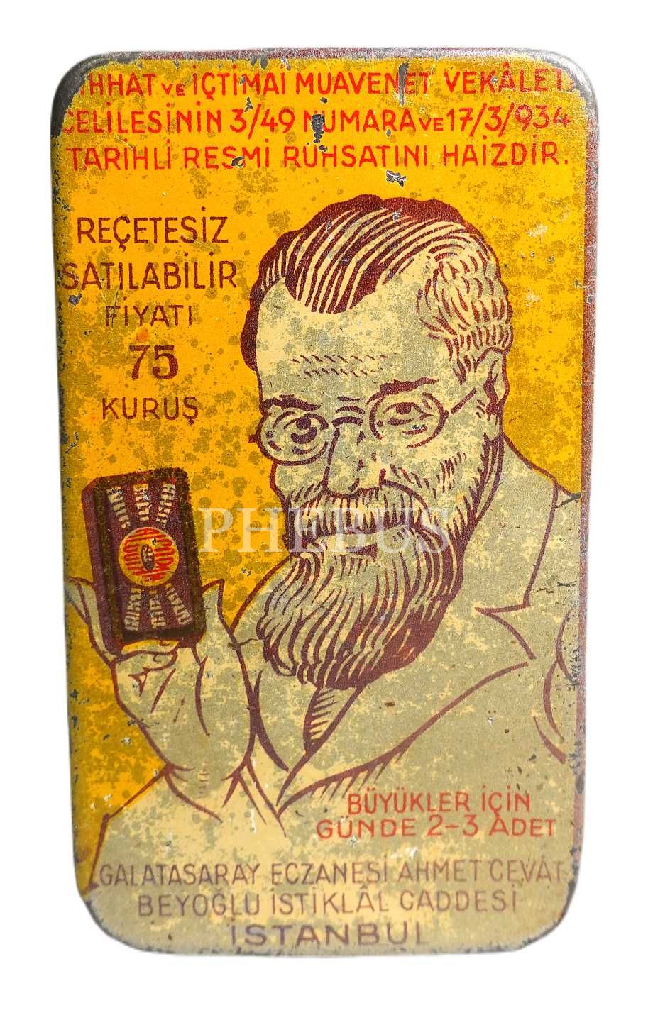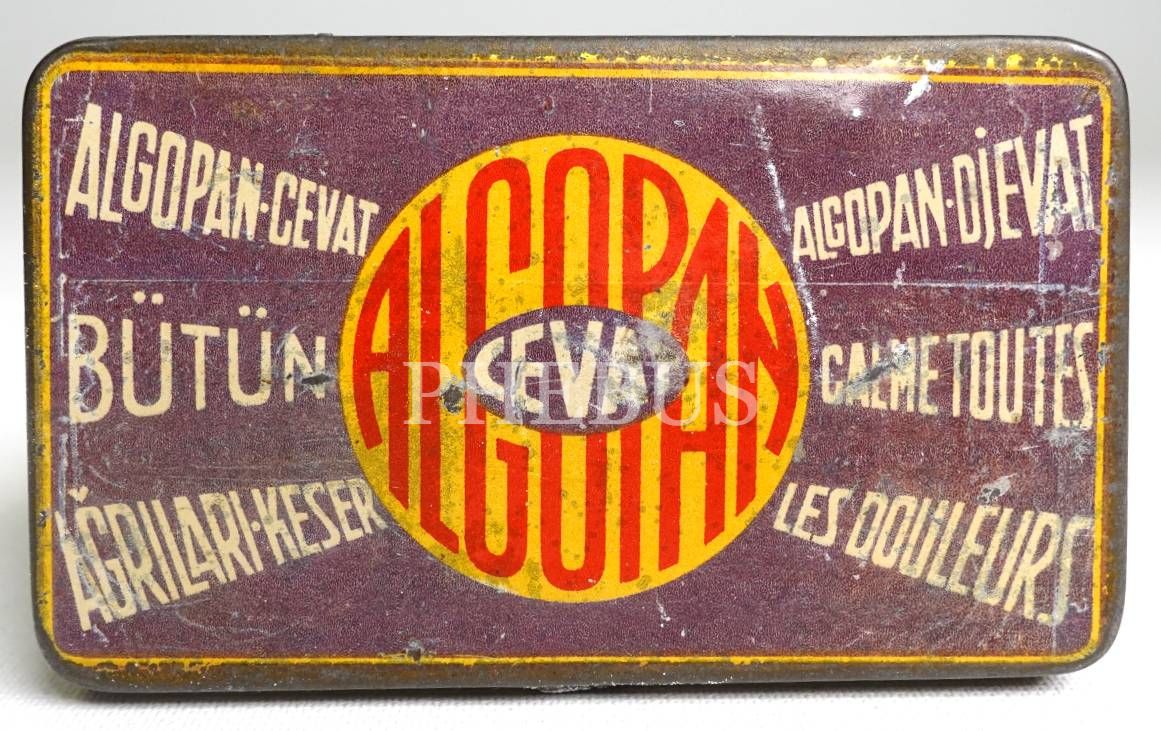 Algopan Cevad (Galatasaray Eczanesi - Ahmet Cevat) marka teneke ilaç kutusu, 8x4x2 cm...