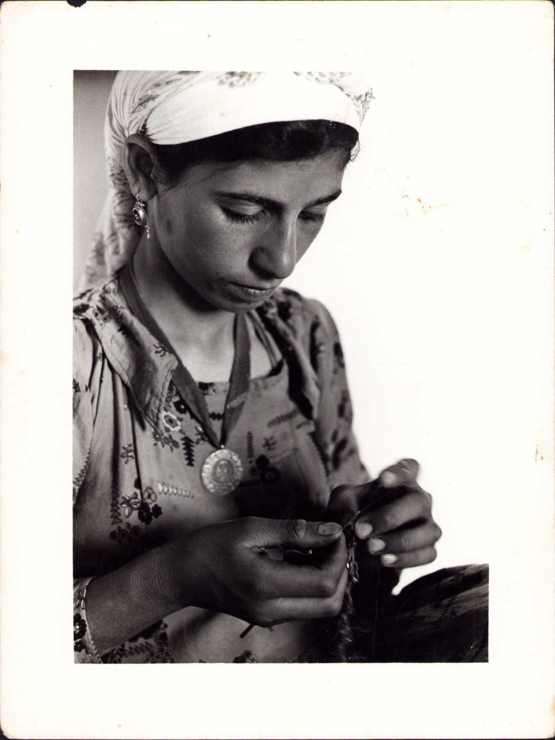 Kürt Kadını el işi yaparken, 18x24 cm