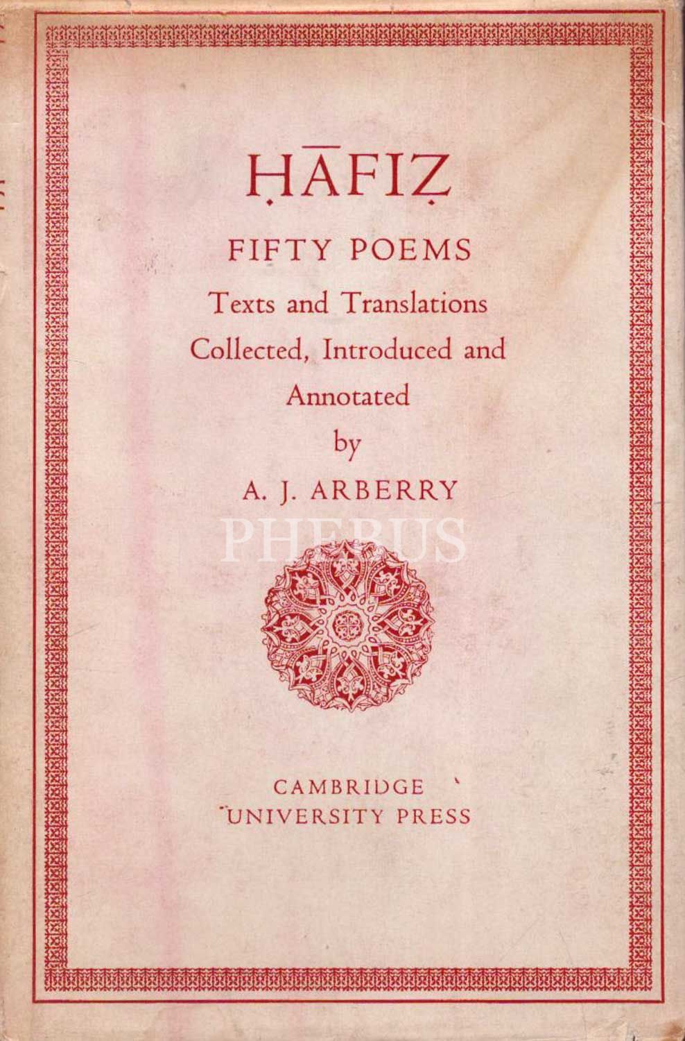 HAFIZ FIFTY POEMS, A.J. Arberry, 1970, Cambridge University Press, 187 sayfa...