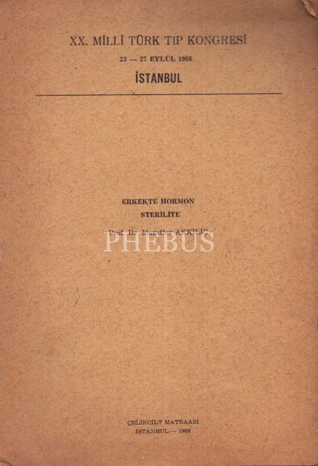 ERKEKTE HORMON STERİLİTE, Prof.Dr.Muzaffer Akkılıç, 1968, Çelikcilt Matbaası, 20 sayfa...