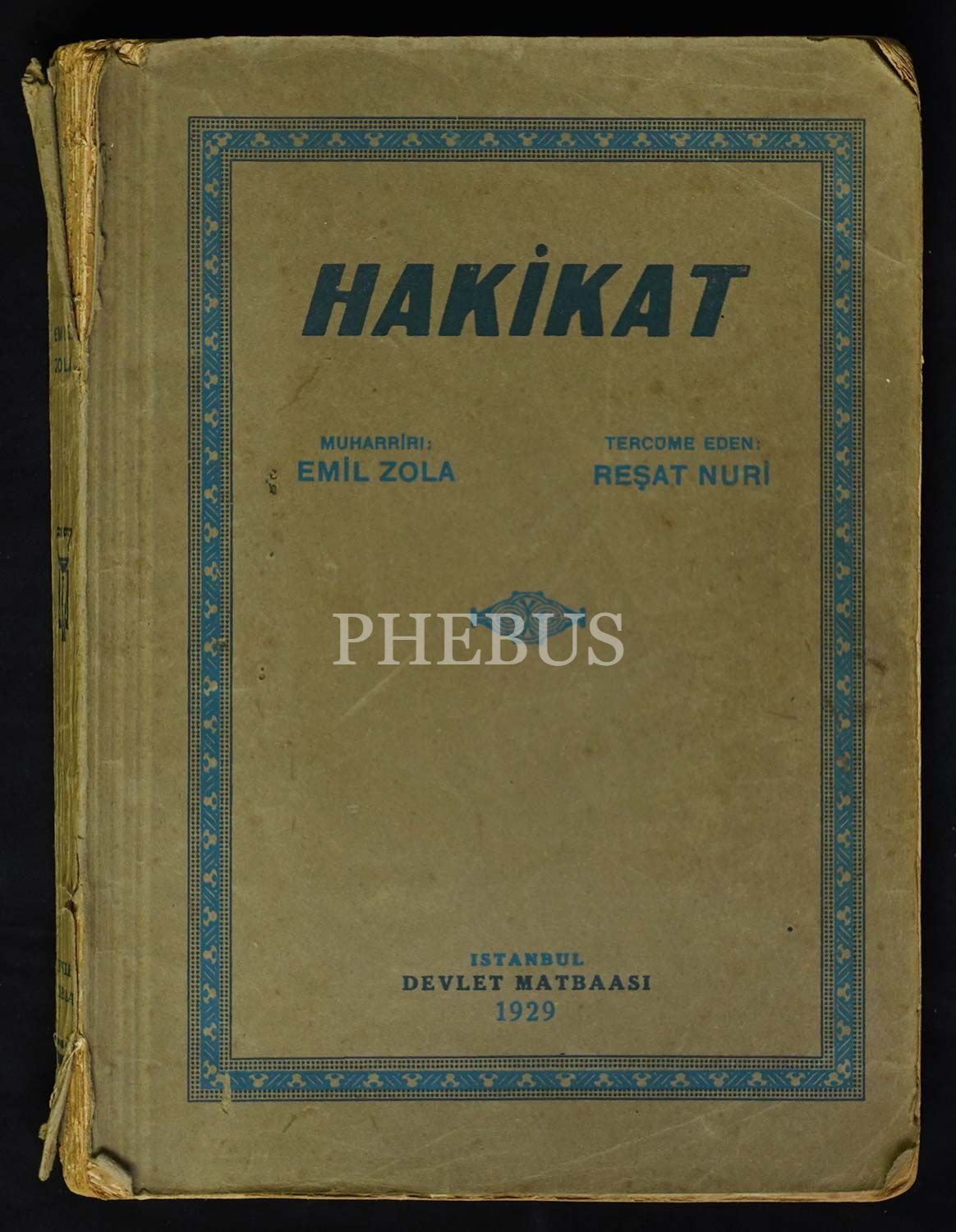 HAKİKAT, muharrir: Emil Zola, tercüme eden: Reşat Nuri, 1929, Devlet Matbaası, 311 sayfa...