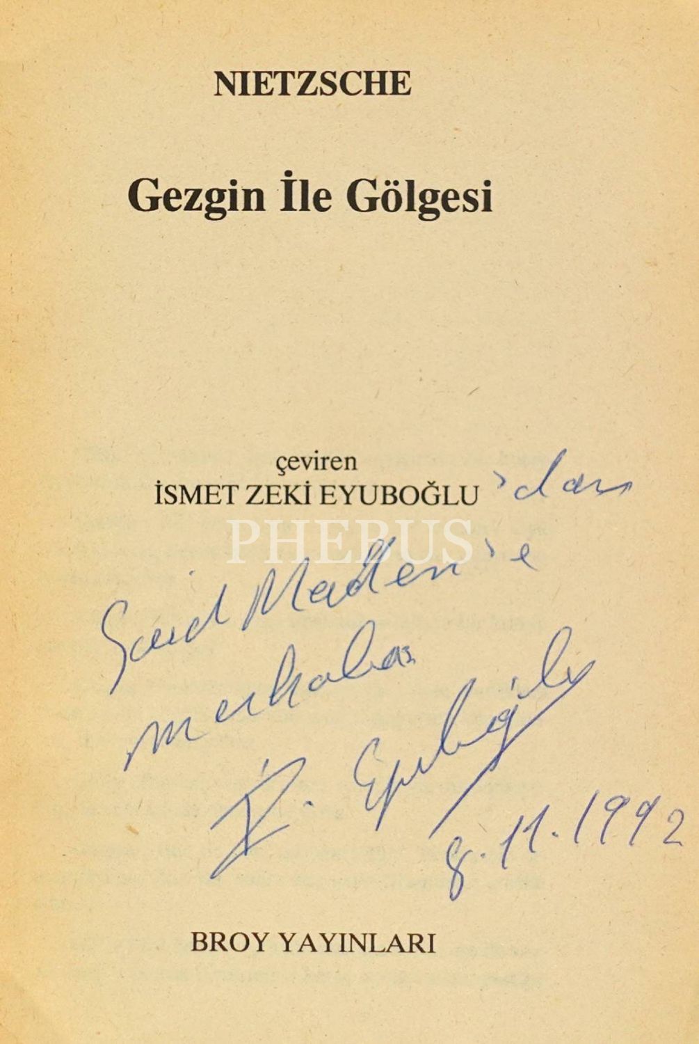 İthaf, "İsmet Zeki Eyuboğlu´dan Said Maden´e merhaba 8.11.1992" şeklindedir.
