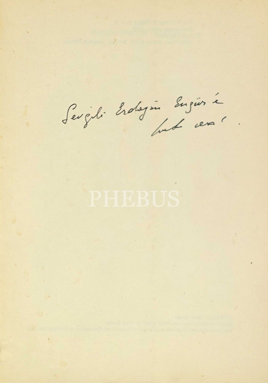 İthaf, "Sevgili Erdoğan Ergür´e" şeklindedir.