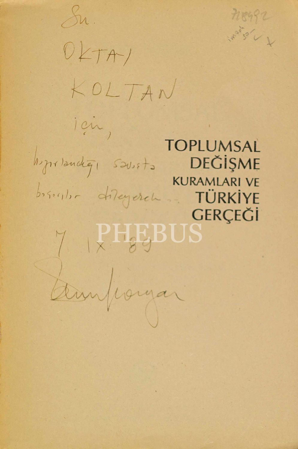 TOPLUMSAL DEĞİŞME KURAMLARI VE TÜRKİYE GERÇEĞİ, Emre Kongar, 1985, Remzi Kitabevi, 460 sayfa, 16x24 cm, İTHAFLI ve İMZALI...